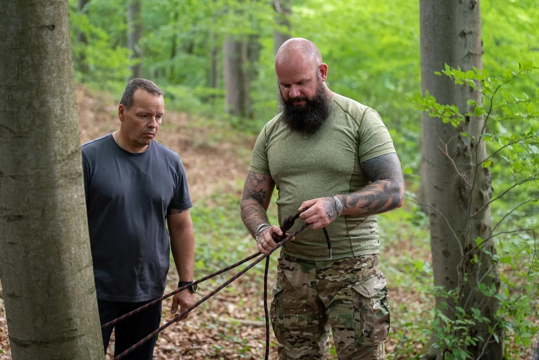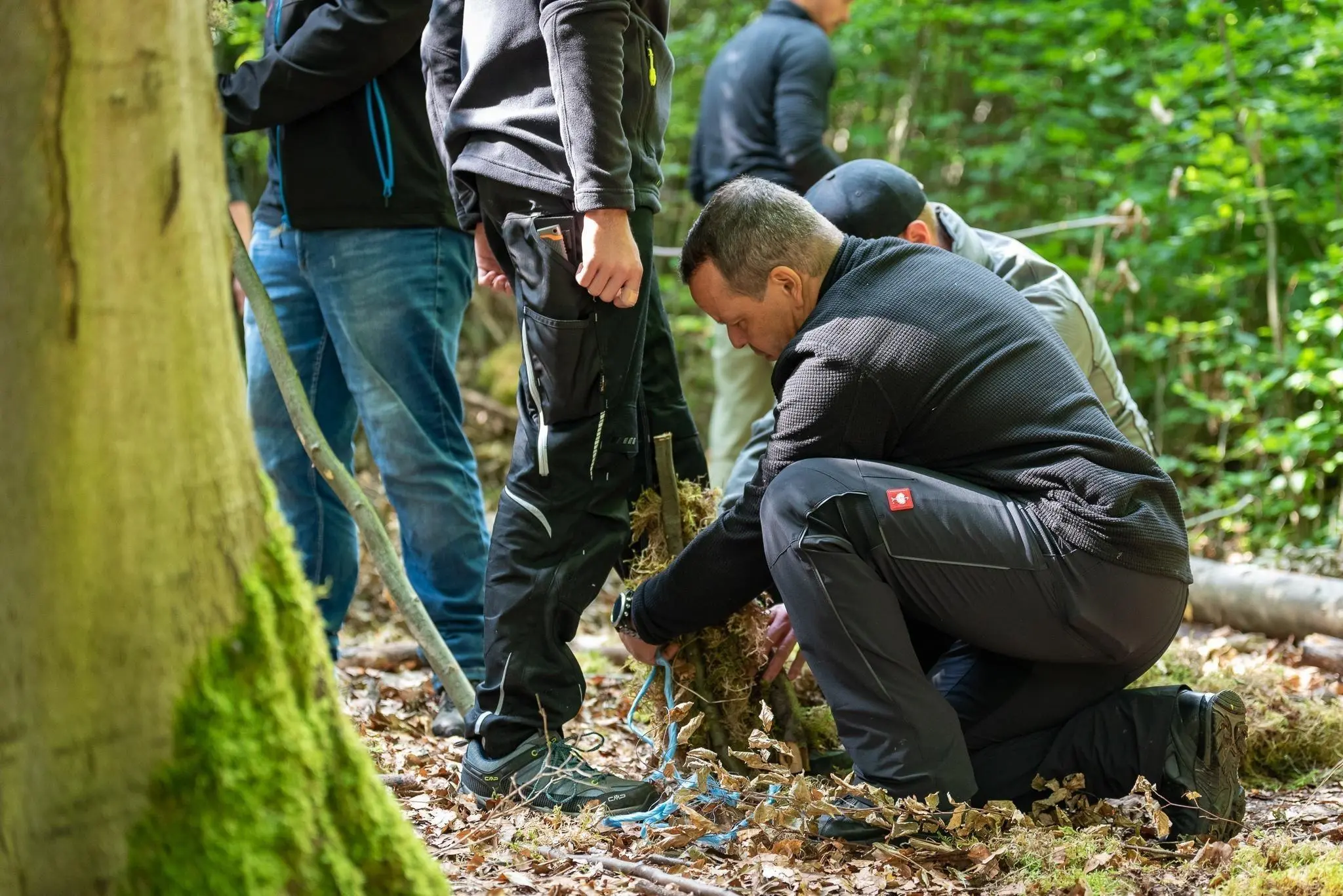 Ein weiterer Bestandteil des Trainings war der Bau von Unterständen und Wetterschutz. Die Teilnehmer lernten, wie sie aus natürlichen Materialien wie Ästen und Blättern einen stabilen Unterschlupf errichten konnten. Diese Fähigkeiten sind entscheidend, um in der Natur Schutz vor den Elementen zu finden. Zudem wurde das sichere Arbeiten mit dem Messer geübt, was für die Verarbeitung von Materialien und die Zubereitung von Notnahrung unerlässlich ist.