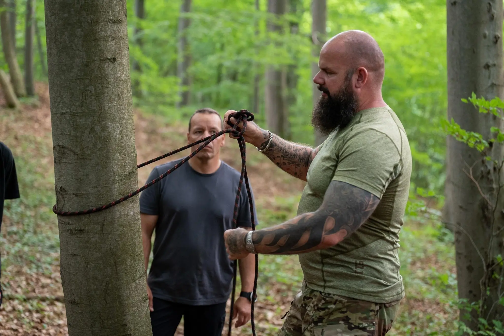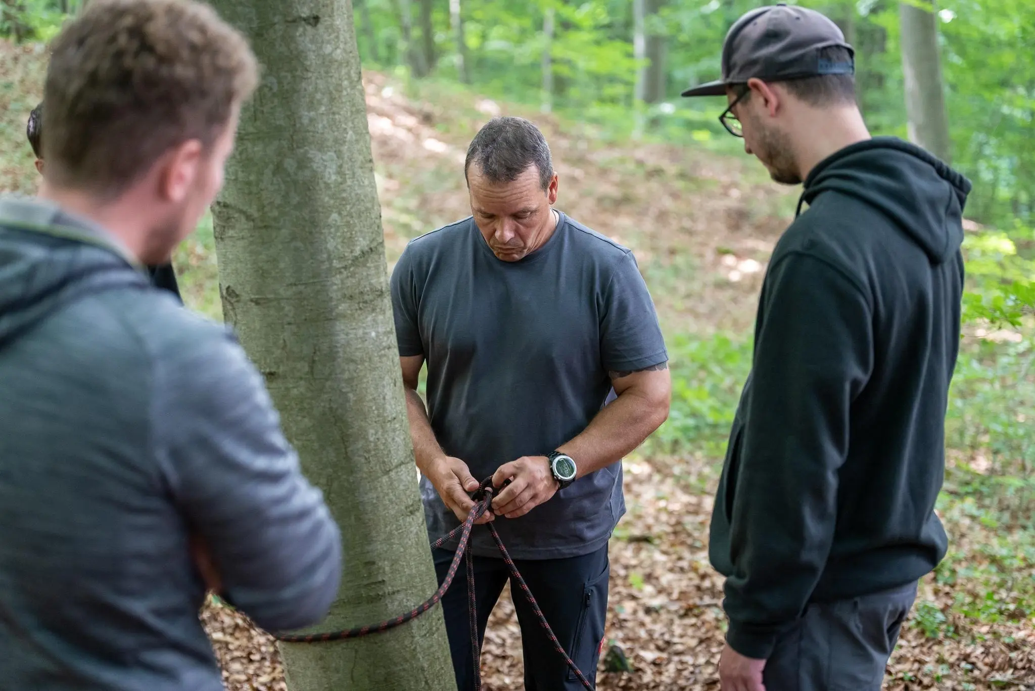 Das Training beinhaltete auch Übungen zur selbstgebauten Seilbrücke und das Abseilen in Notsituationen, die jedoch ergänzend zu den grundlegenden Survival-Techniken standen. Diese Übungen förderten das Vertrauen in die eigenen Fähigkeiten und die Teamarbeit unter den Teilnehmern. Insgesamt bot das Survival-Training eine umfassende Einführung in essentielle Überlebenstechniken, die sowohl theoretisches Wissen als auch praktische Fähigkeiten umfassten.