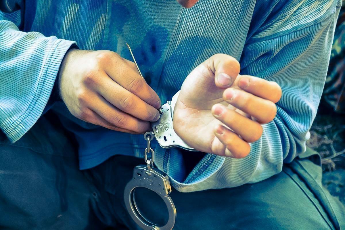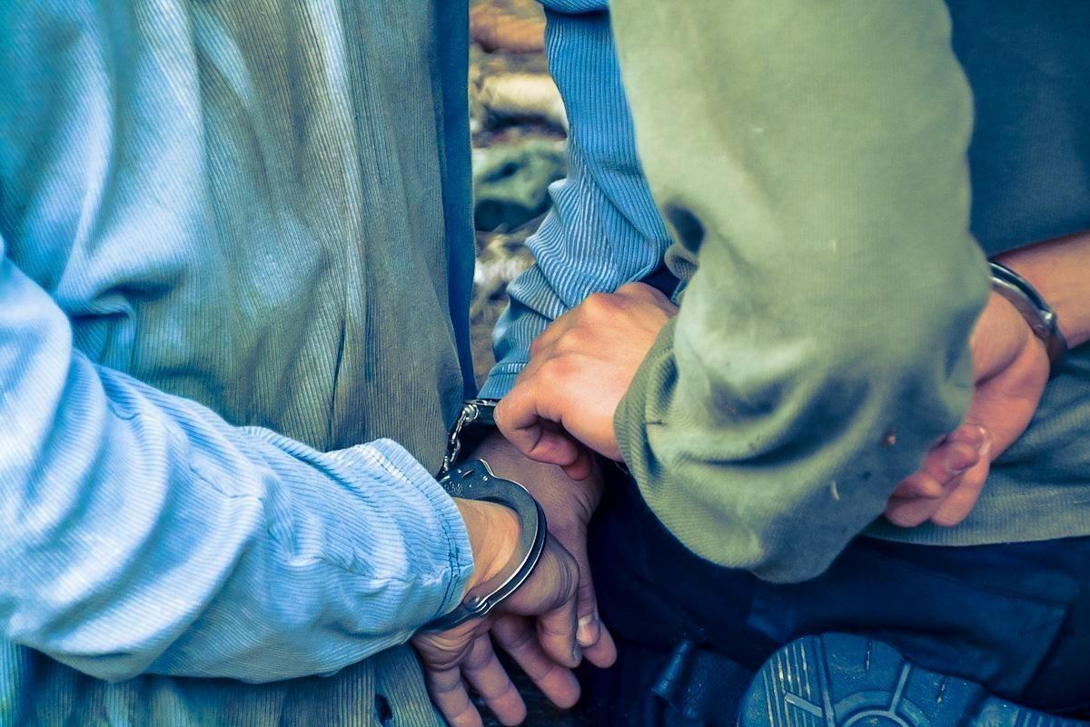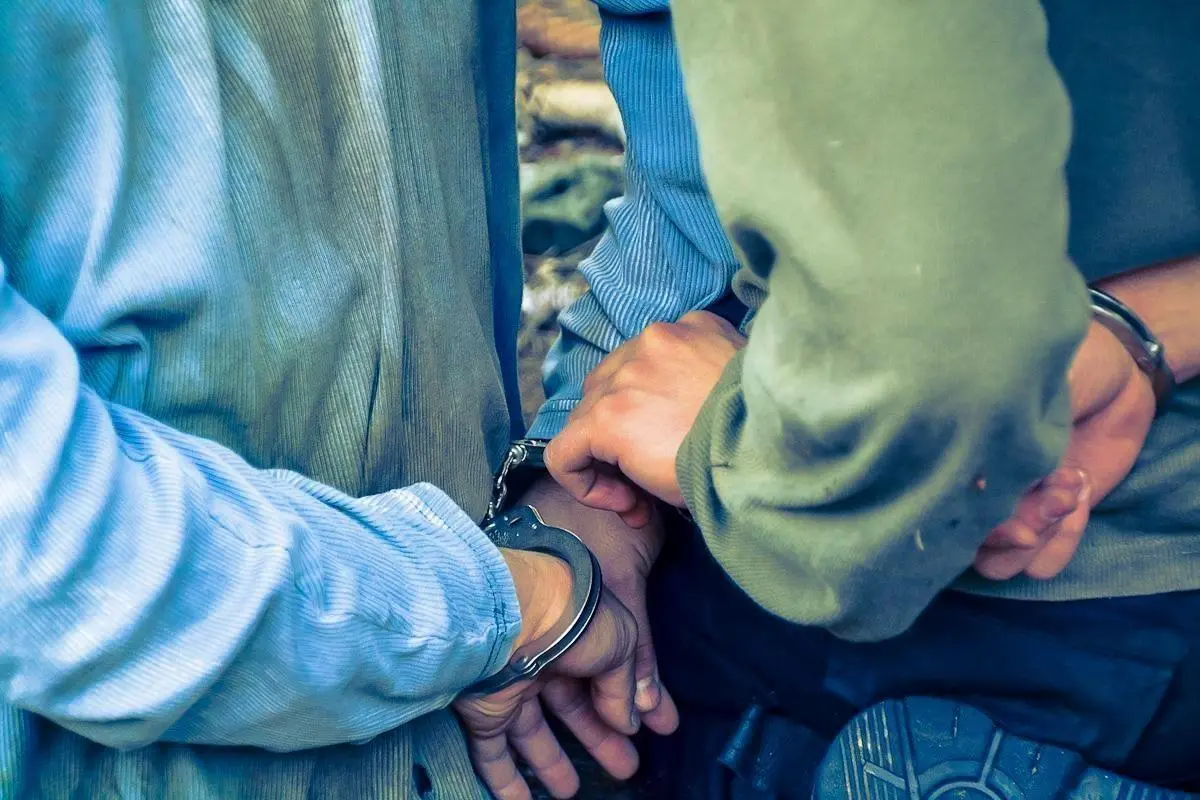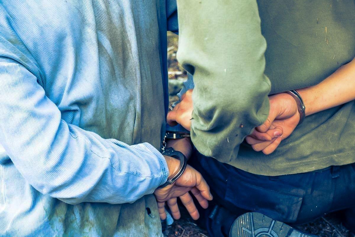 Hände mit Handschellen hinter dem Rücken, zwei Personen stehen nah beieinander