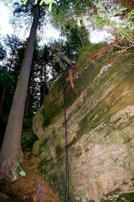 Ein wichtiger Bestandteil des Trainings war die selbstgebaute Seilbrücke, die den Teilnehmern half, Hindernisse sicher zu überwinden. Diese Technik erforderte Teamarbeit und Präzision, um die Seilüberquerung erfolgreich zu meistern. Zudem übten die Teilnehmer das Abseilen in Notsituationen, was eine essenzielle Fähigkeit für das Überleben in unwegsamem Gelände darstellt. Diese Übungen wurden sowohl in der Theorie als auch praktisch durchgeführt, um das Vertrauen in die eigenen Fähigkeiten zu stärken.