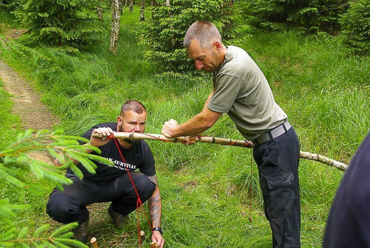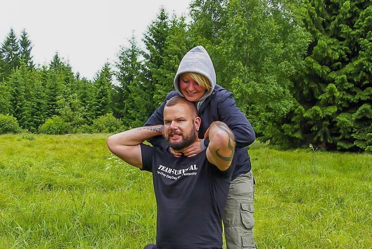 Zusätzlich wurden Techniken zur Selbstverteidigung behandelt. Die Teilnehmer lernten verschiedene Befreiungen und Hebeltechniken kennen, um sich in kritischen Situationen effektiv verteidigen zu können. Das Abseilen in Notsituationen wurde ebenfalls angesprochen, um den Teilnehmern ein Gefühl für Sicherheit und Kontrolle in herausfordernden Lagen zu vermitteln. Diese vielfältigen Übungen trugen dazu bei, ein umfassendes Verständnis für die Herausforderungen des Überlebens in der Natur zu entwickeln.