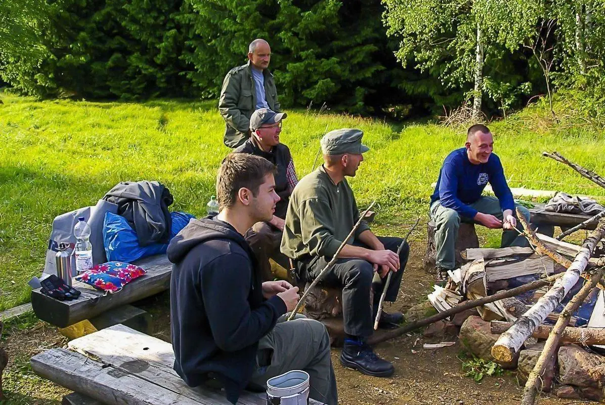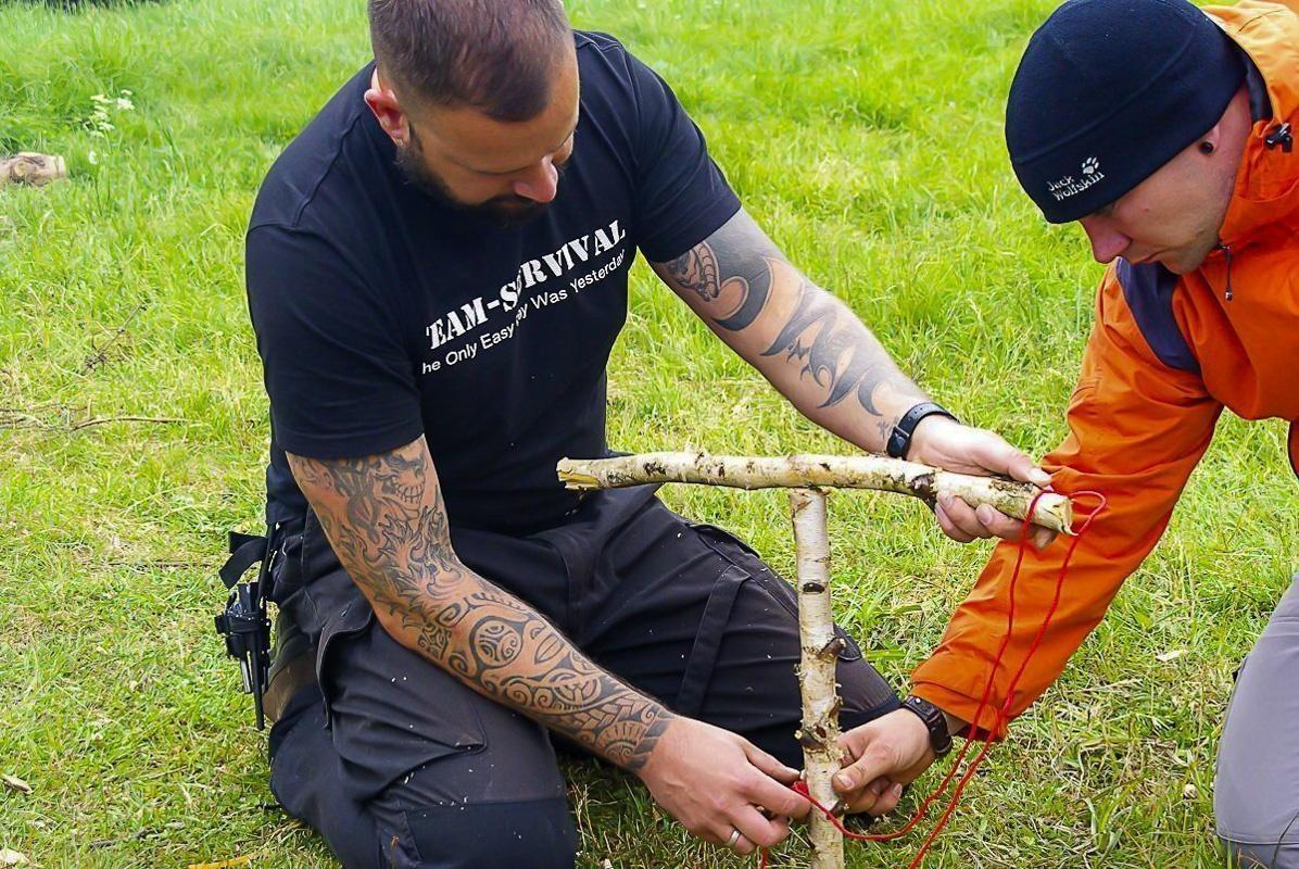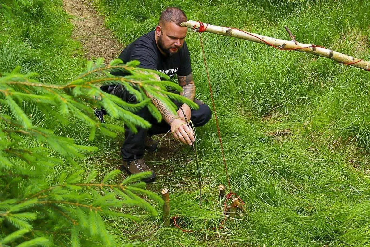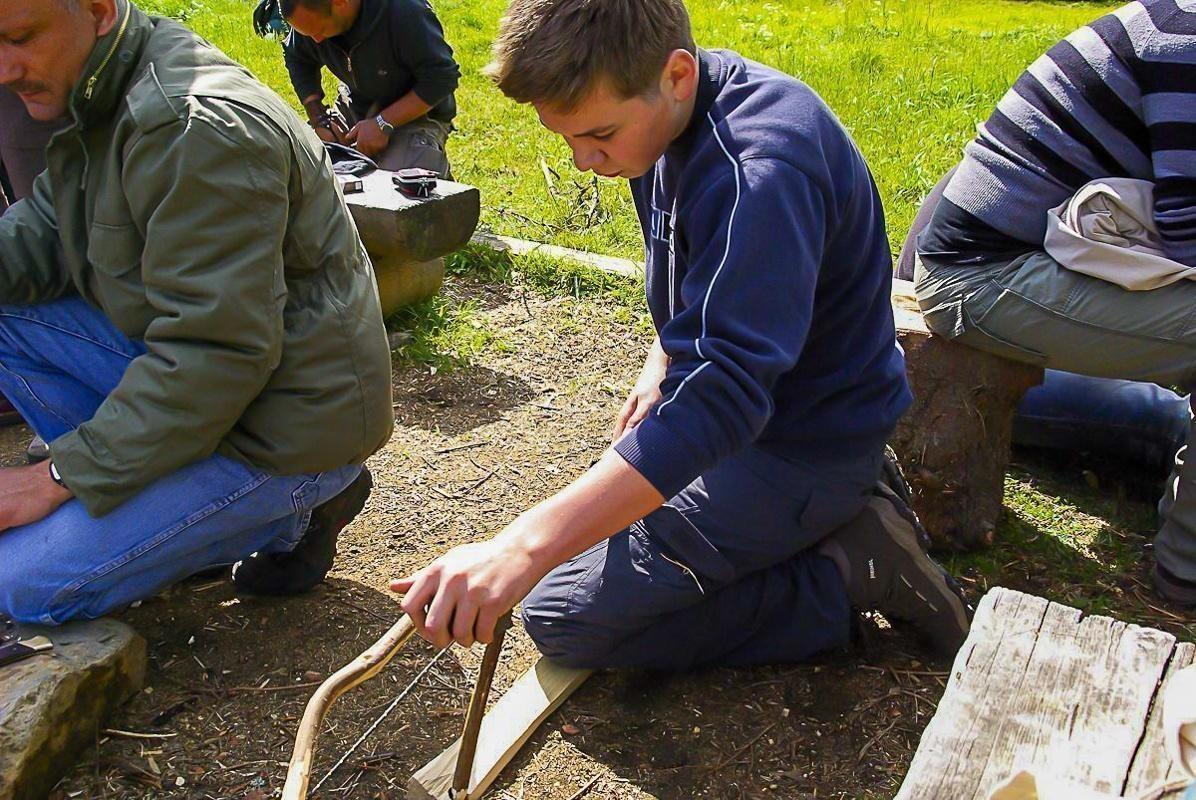 Die Gruppe beschäftigte sich auch mit dem Fallenbau, wobei verschiedene Methoden zur Herstellung von Schlagfallen und Schlingen demonstriert wurden. In diesen praktischen Übungen konnten die Teilnehmer ihre Kenntnisse über Knoten- und Schnurtechniken vertiefen. Ein weiterer wichtiger Bestandteil des Kurses war das Bogentraining, das den Teilnehmern half, ihre Fähigkeiten im Umgang mit traditionellen Jagdmethoden zu schulen.