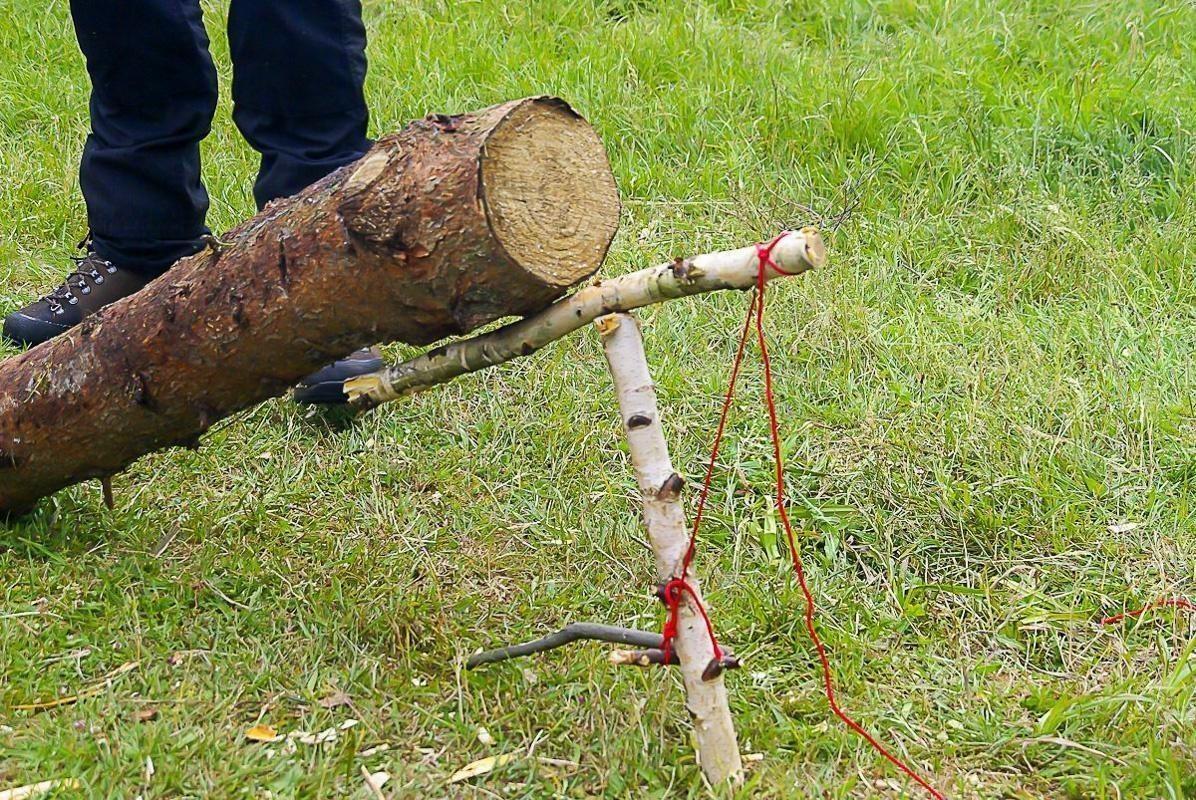 Schlagfalle (Figure-Four) wird mit einem Stock und Schnur konstruiert