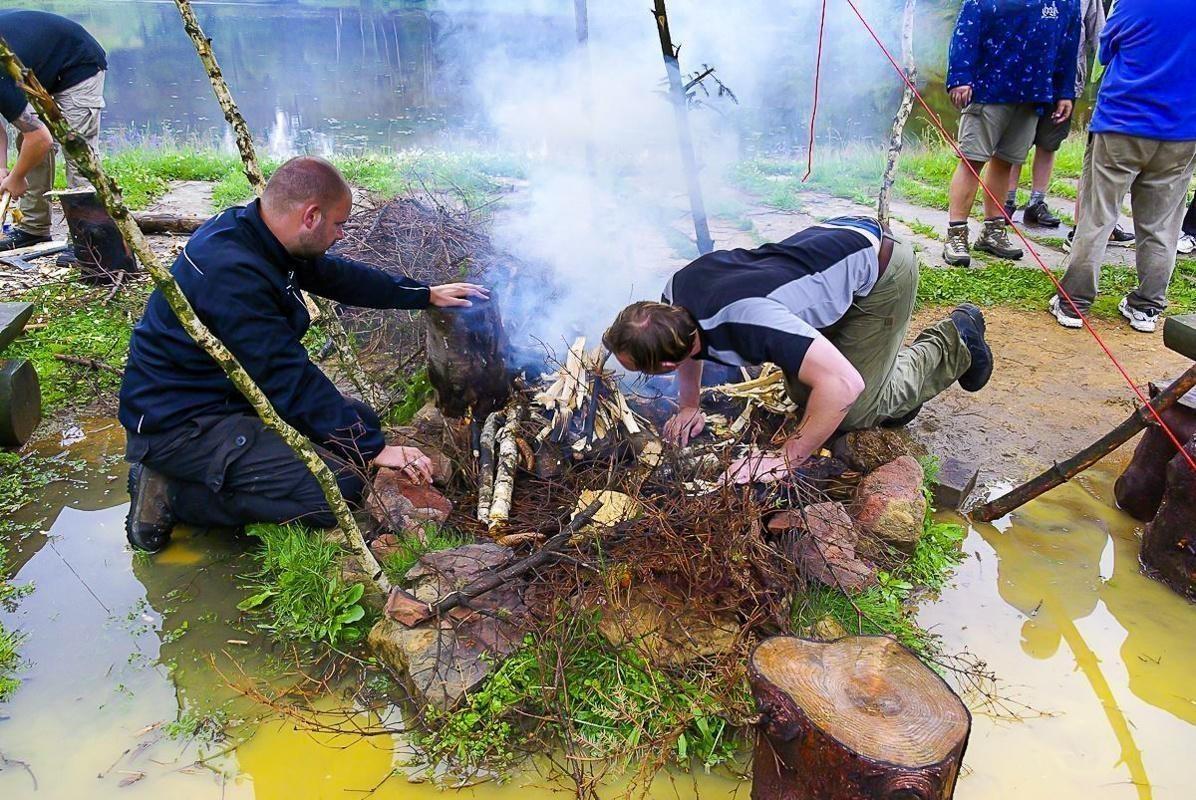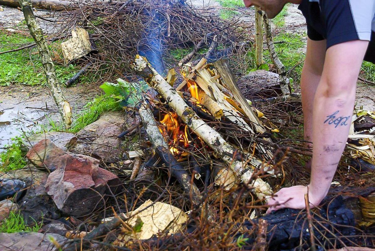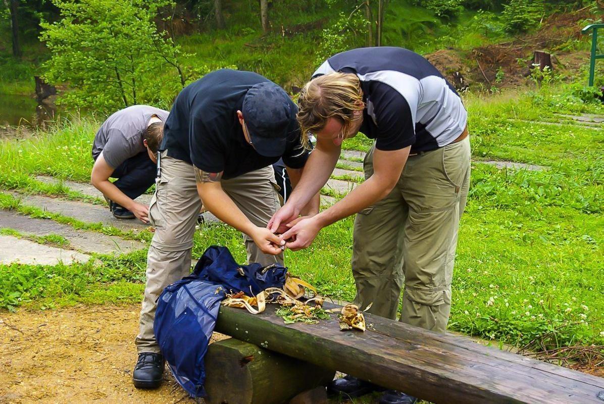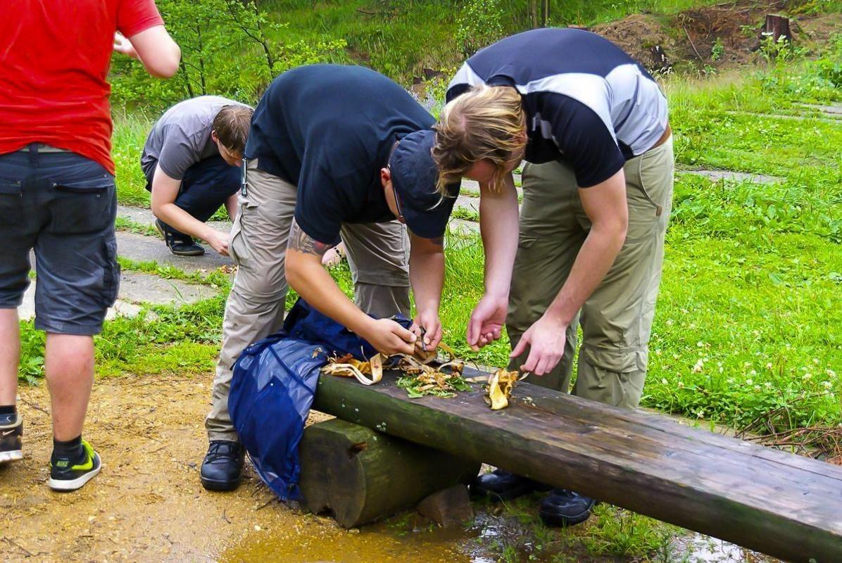 Die Teilnehmer beschäftigten sich intensiv mit dem Bau von Unterständen und Wetterschutz, um sich vor den Elementen zu schützen. Dabei wurde Wert auf die richtige Technik und Materialwahl gelegt. Das sichere Arbeiten mit dem Messer und das Schnitzen von Holz waren ebenfalls Teil des Programms, um die Fähigkeiten im Umgang mit Werkzeugen zu schärfen. Die Notwendigkeit, eine Feuerstelle zu errichten und das Feuer zu entfachen, wurde durch praktische Übungen verdeutlicht. Hierbei lernten die Teilnehmer, wie wichtig es ist, Holz richtig zu lagern und nachzulegen, um ein effektives Feuer zu erhalten.