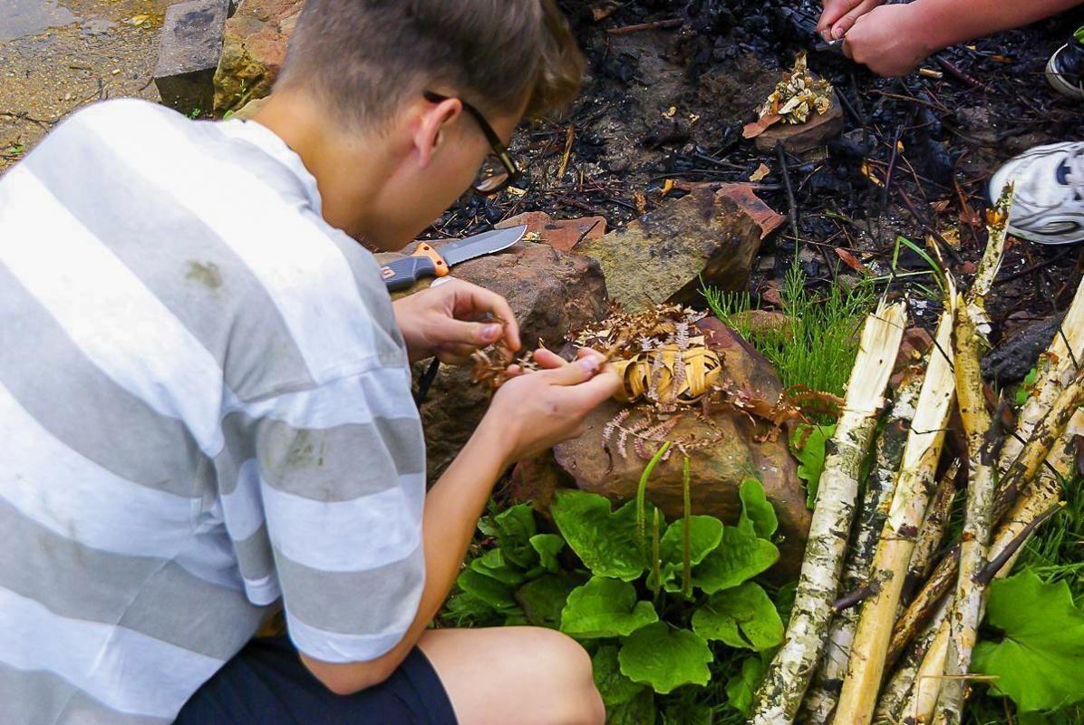 Im Rahmen des Realistic-Survival-Kurses, der am 07. und 08. Juli 2012 stattfand, erlernten die Teilnehmer grundlegende Survival-Techniken. Die Ausbildung umfasste verschiedene Aspekte des Überlebens in der Natur, einschließlich der Zubereitung von Nahrungsmitteln und dem sicheren Umgang mit Werkzeugen. Ein zentraler Bestandteil war die Zubereitung von Insekten als Notnahrung, wobei die Teilnehmer lernten, wie man diese effektiv in einer Pfanne über dem Feuer gart. Auch das Garen von Kleinfisch oder Krebs stellte eine wichtige Nahrungsquelle dar.
