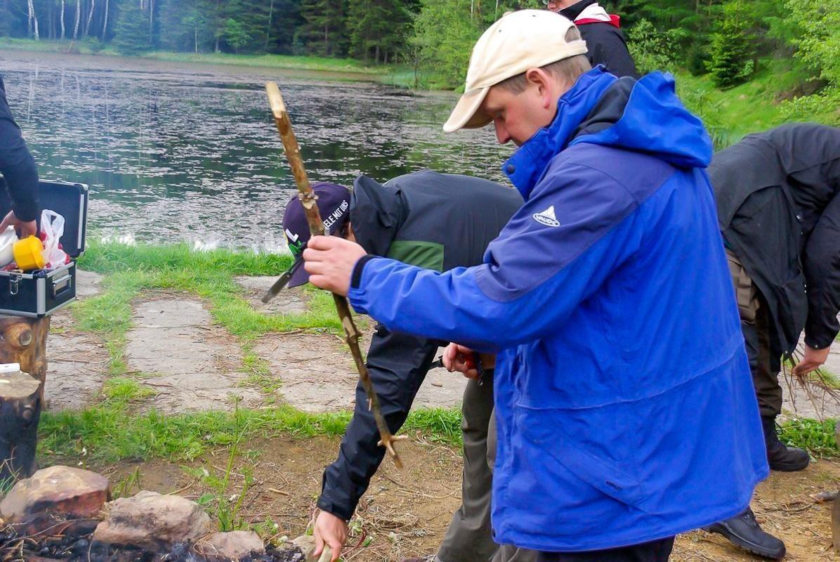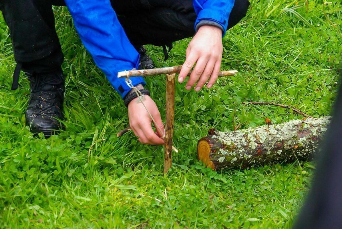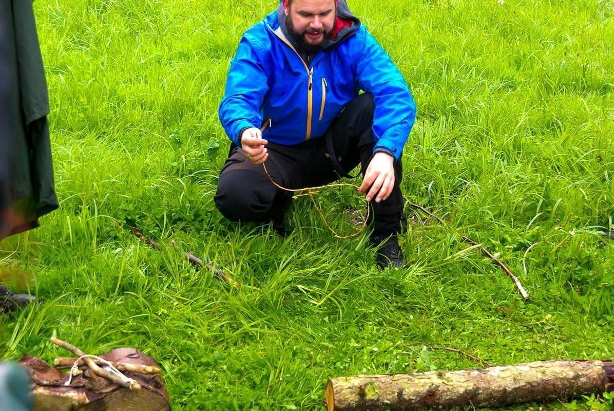 Die Gruppe widmete sich ebenfalls dem Fallenbau, wobei einfache Schlagfallen und Schlingen konstruiert wurden. Dies förderte das Verständnis für die Nahrungsbeschaffung in der Wildnis. Erste Hilfe und Tragetechniken wurden ebenfalls behandelt, um sicherzustellen, dass die Teilnehmer in der Lage waren, Verletzungen zu versorgen und verletzte Personen sicher zu transportieren. Die Vielfalt der praktischen Übungen ermöglichte es den Teilnehmern, ein umfassendes Wissen über Überlebenstechniken zu erlangen.