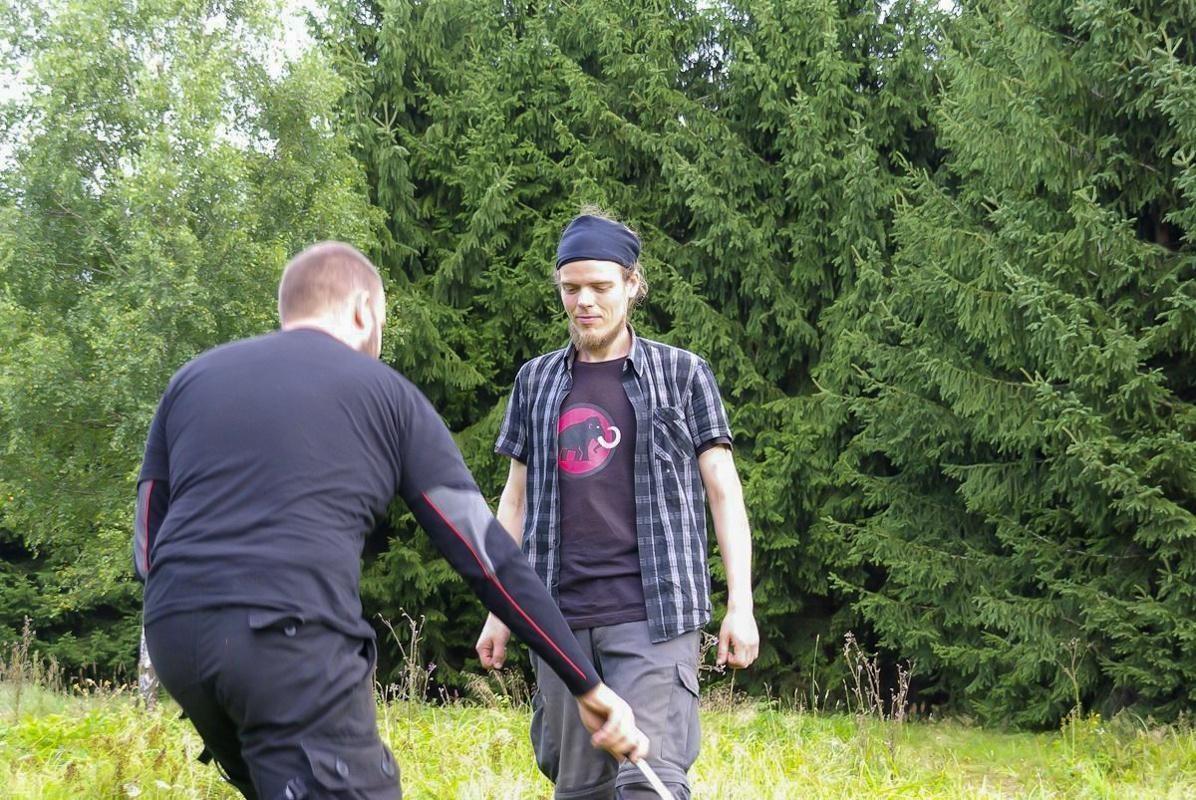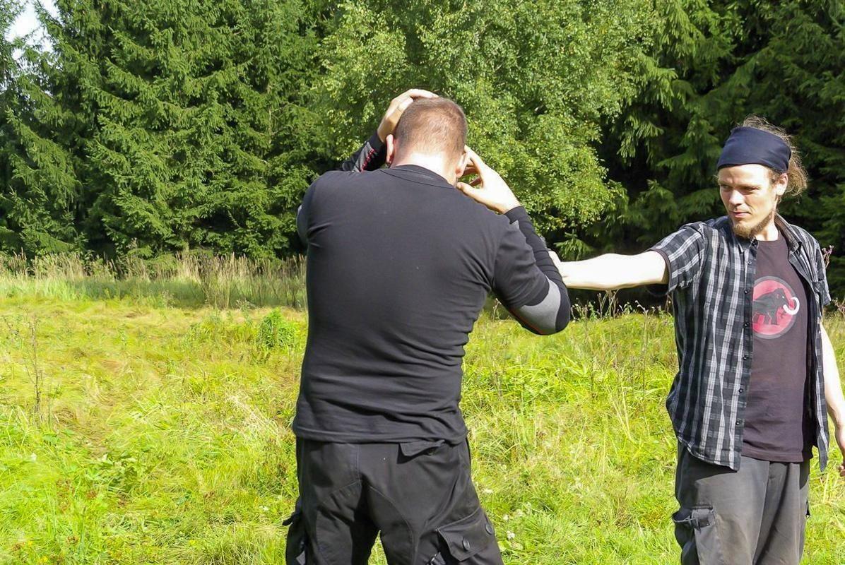 Ein weiterer Bestandteil des Kurses war die Selbstverteidigung, in der verschiedene Techniken wie Befreiungen, Clinch und Hebel geübt wurden. Diese Fähigkeiten sind nicht nur im urbanen Umfeld von Bedeutung, sondern auch in der Natur, wo unerwartete Begegnungen mit Tieren oder anderen Personen auftreten können. Die praktische Anwendung dieser Techniken fand in einem geschützten Rahmen statt, was es den Teilnehmern ermöglichte, Vertrauen in ihre Fähigkeiten zu entwickeln.
