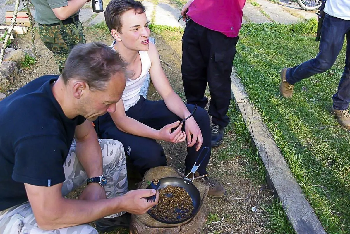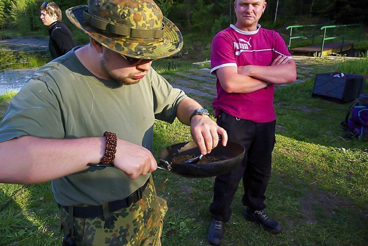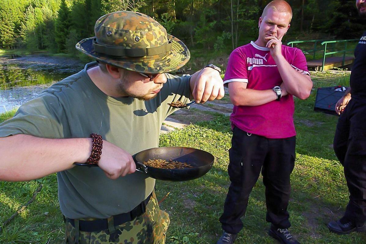 Ein weiterer wichtiger Bestandteil des Kurses war die Zubereitung von Insekten als Notnahrung. Die Teilnehmer lernten, wie sie Insekten sicher und schmackhaft zubereiten konnten, um im Ernstfall auf diese Nahrungsquelle zurückgreifen zu können. Das Garen mit Alufolie sowie das Kochen in einer Pfanne über dem Feuer wurden ebenfalls demonstriert. Diese Methoden sind entscheidend, um in einer Überlebenssituation Nahrungsmittel zuzubereiten und die Nährstoffe zu erhalten.