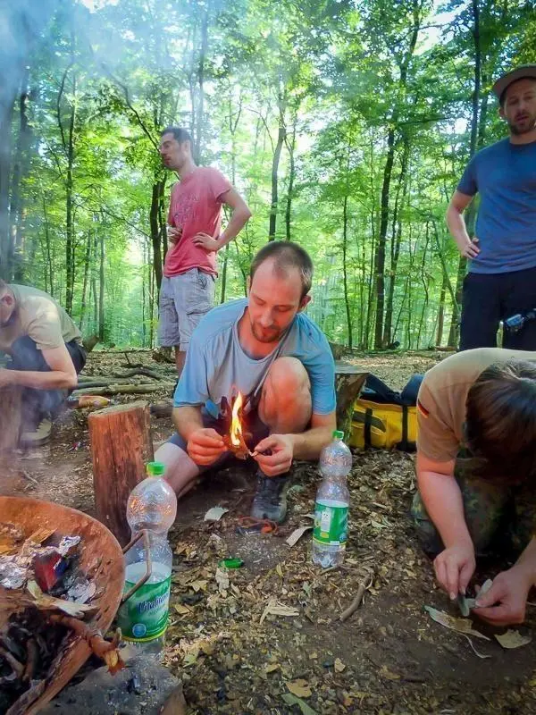 Im Rahmen eines Realistic-Survival-Kurses in Hessen erlernten die Teilnehmer grundlegende Techniken des Überlebens in der Natur. Während des Trainings arbeiteten sie an verschiedenen Aspekten, die für das Überleben in freier Wildbahn entscheidend sind. Die Gruppe sammelte Äste und bereitete Zunder vor, um Feuer zu entfachen und Glut zu pflegen. Dies stellte eine zentrale Fähigkeit dar, um sich in einer Notsituation warm zu halten und Nahrung zuzubereiten.