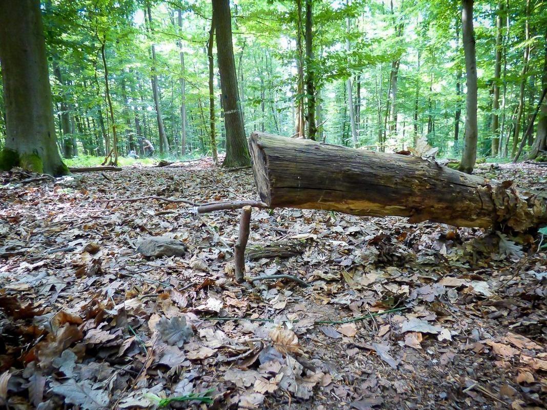 Schlagfalle (Figure-Four/4er-Falle) aus Holzstücken im Wald