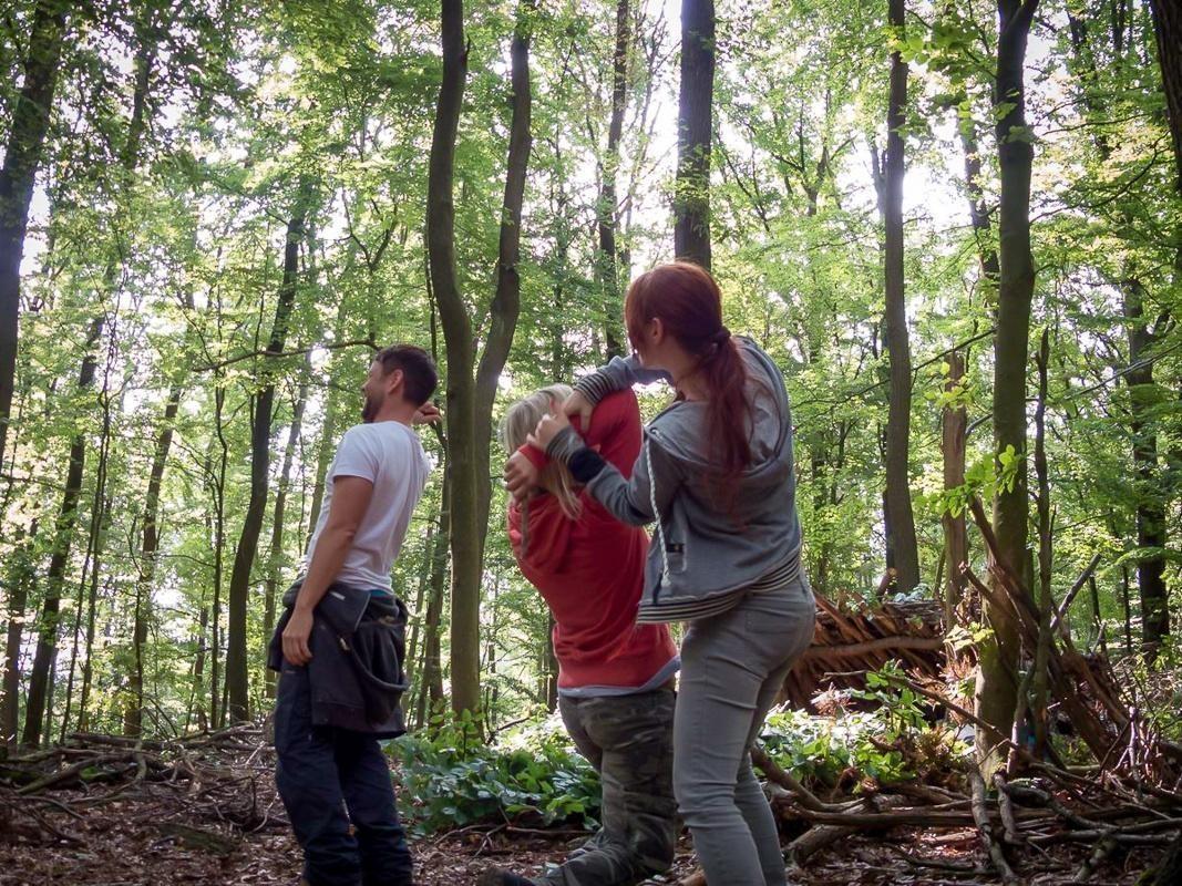 Gruppendynamik im Wald, Teilnehmer interagieren spielerisch miteinander