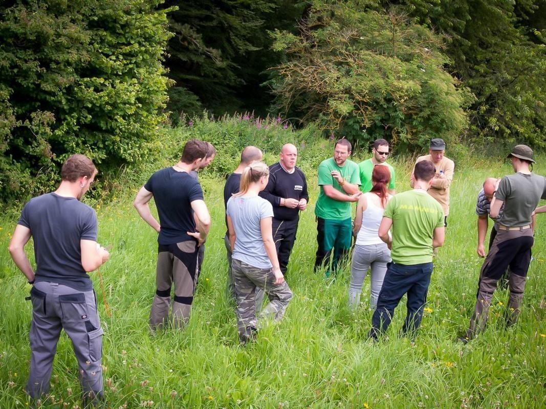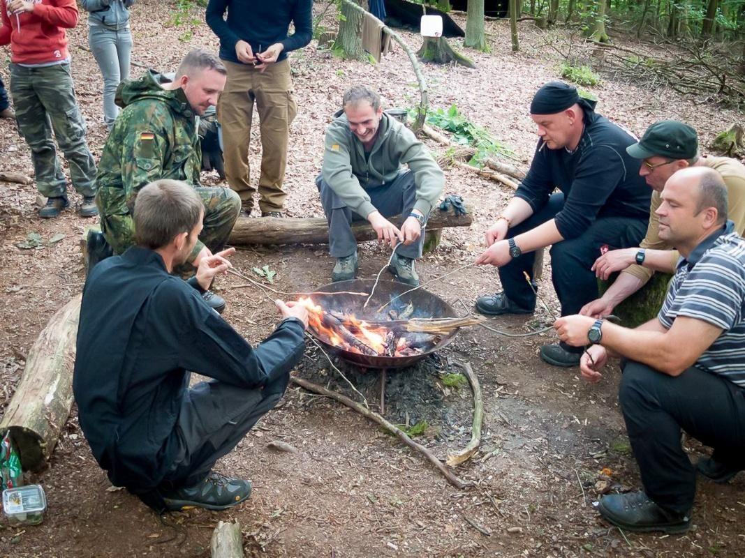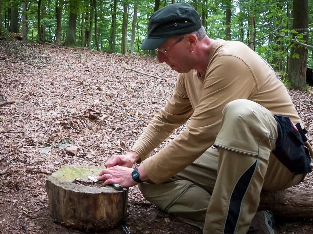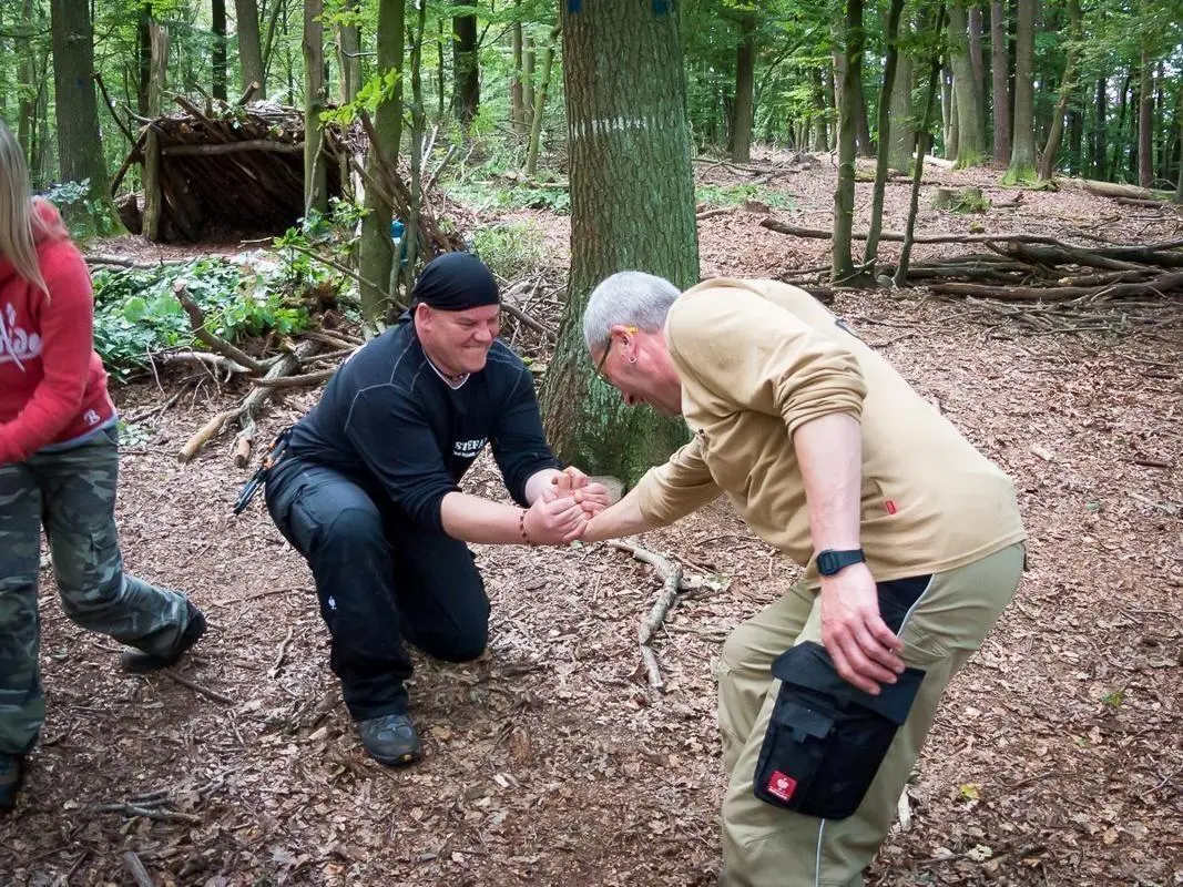 Im Juli 2014 fand ein Realistic-Survival-Kurs in Hessen statt, bei dem die Teilnehmer grundlegende Überlebenstechniken erlernten. Die Gruppe arbeitete intensiv an verschiedenen Projekten, die das Schnitzen, den Bau von Unterständen und die Zubereitung von Nahrung umfassten. Während des Trainings wurde Wert auf sicheres Arbeiten mit dem Messer gelegt, was den Teilnehmern half, ihre Fähigkeiten im Umgang mit Werkzeugen zu verbessern. Das Schnitzen an Holzstücken und Baumstümpfen stellte eine wichtige Übung dar, um die Präzision und Sicherheit beim Arbeiten mit scharfen Klingen zu fördern.