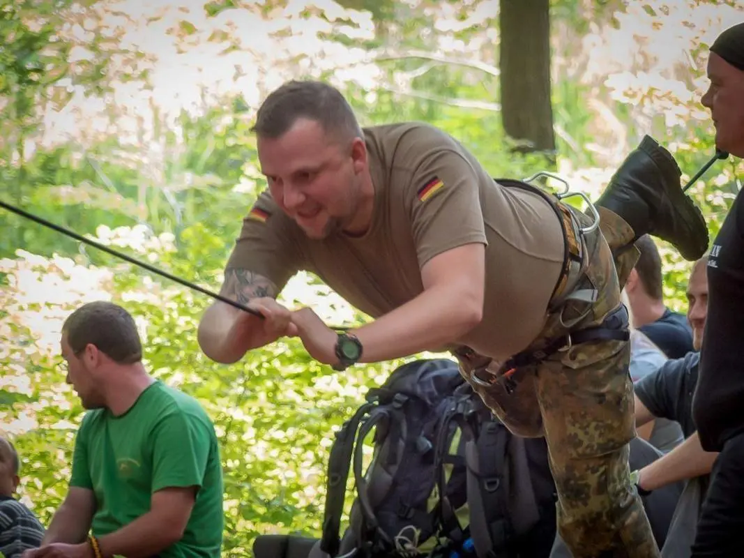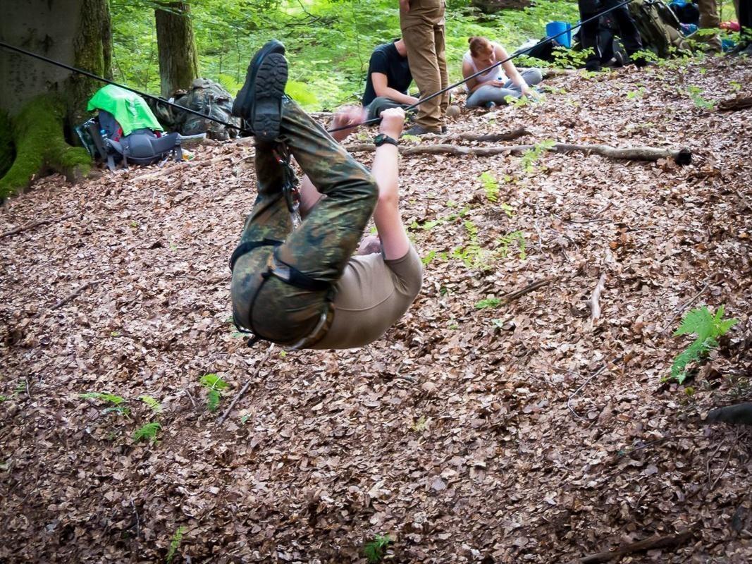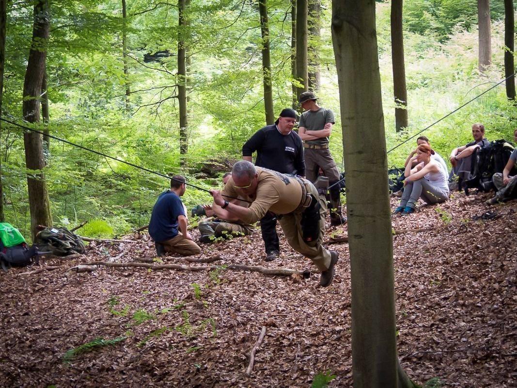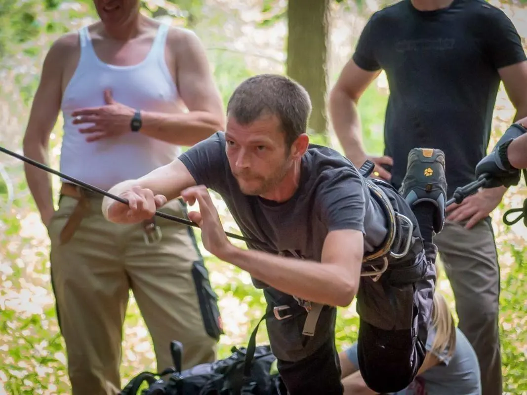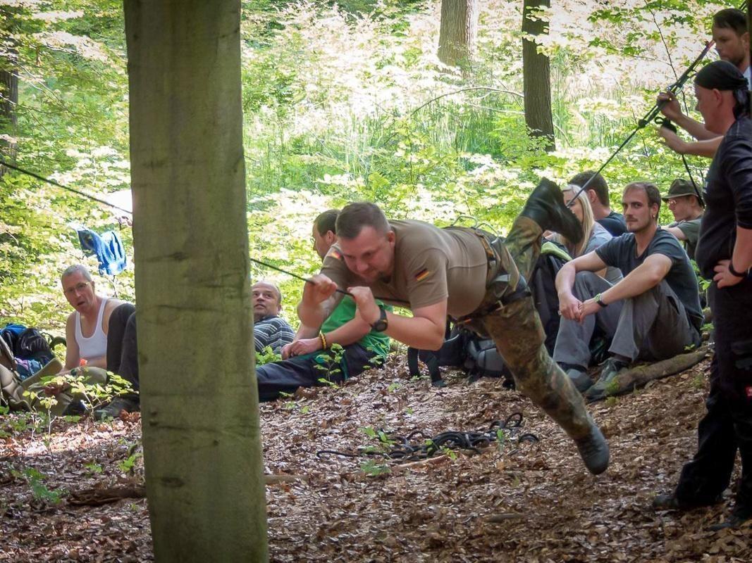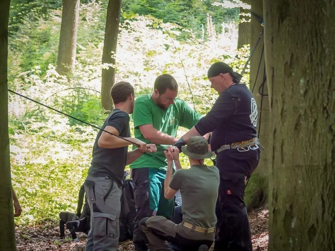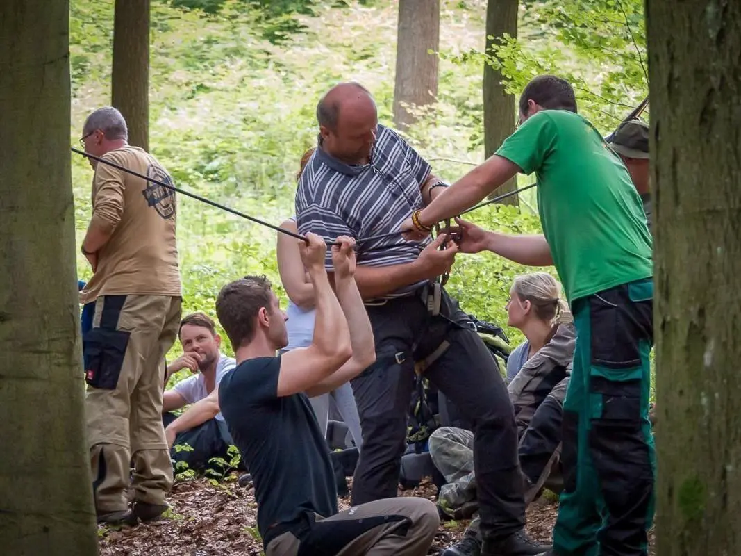 Ein weiterer Aspekt des Kurses war die Konstruktion einer selbstgebauten Seilbrücke, die den Teilnehmern half, ihre Fähigkeiten im Bereich der Seilüberquerung zu entwickeln. Diese Übung erforderte Teamarbeit und präzise Planung, um sicher zwischen den Bäumen zu schwingen. In Notsituationen wurde das Abseilen geübt, was den Teilnehmern ein Gefühl für Sicherheit und Kontrolle in potenziell gefährlichen Situationen vermittelte. Die Kombination dieser Techniken ermöglichte es den Teilnehmern, ein umfassendes Verständnis für die Herausforderungen des Überlebens in der Natur zu entwickeln.