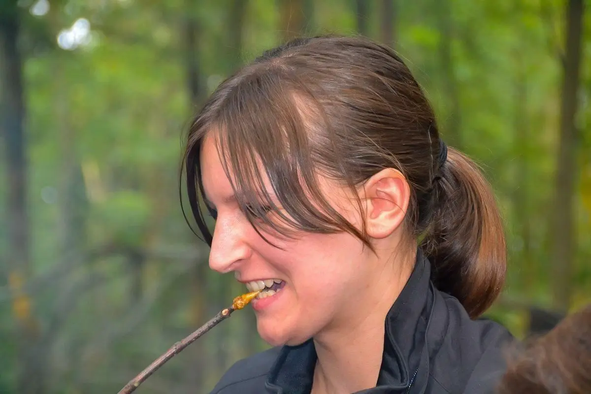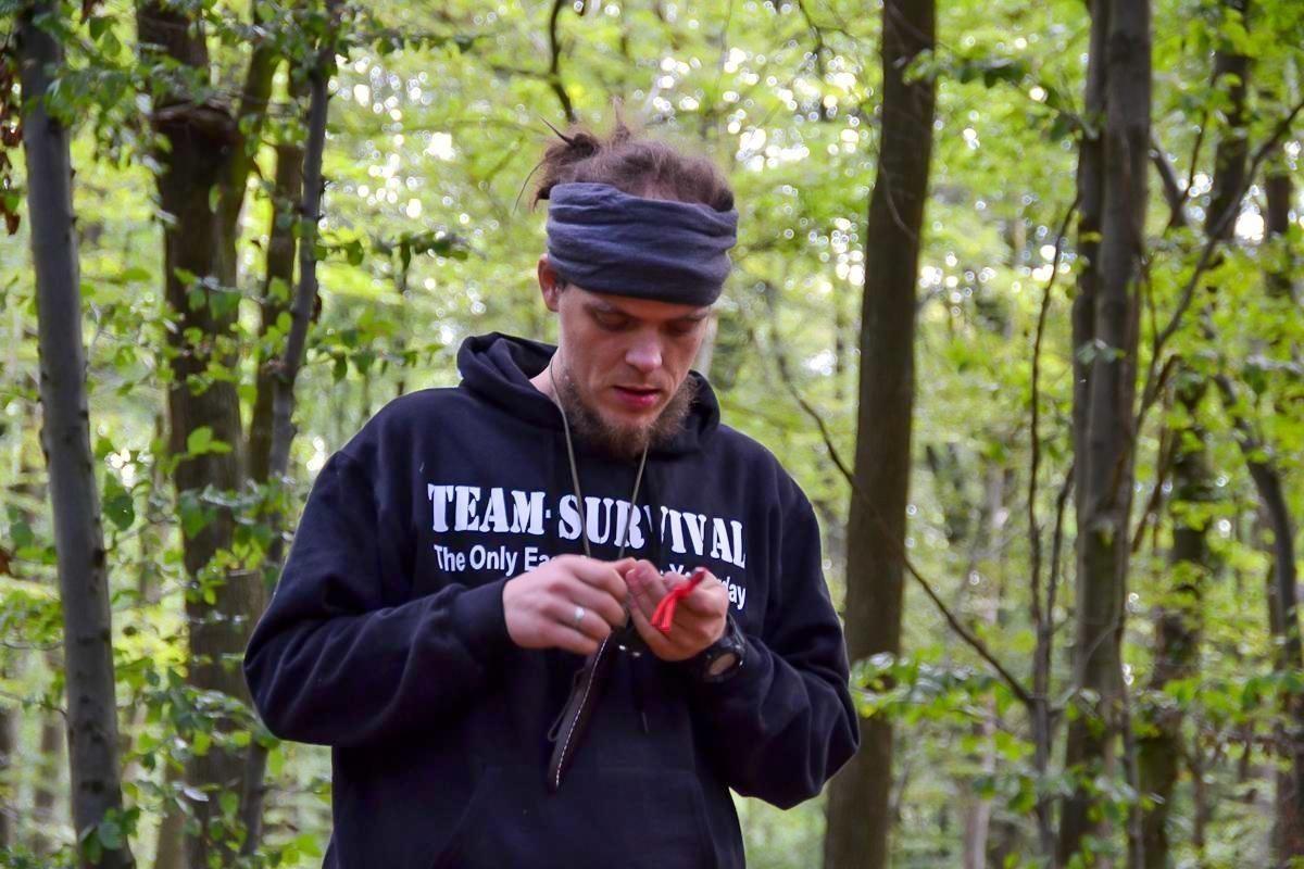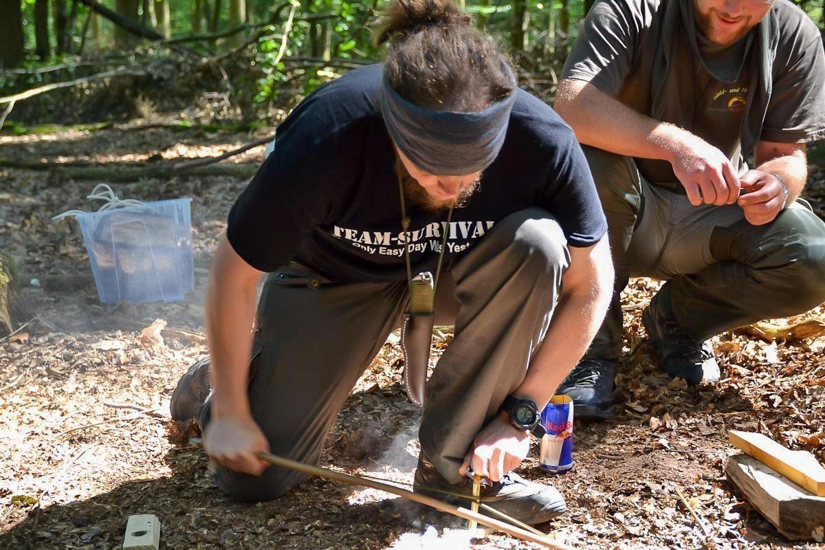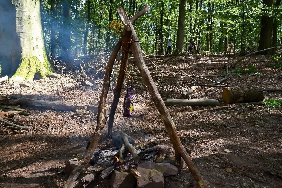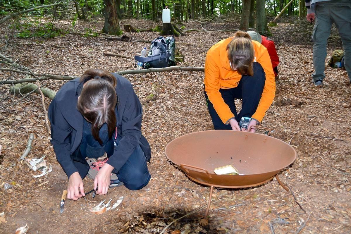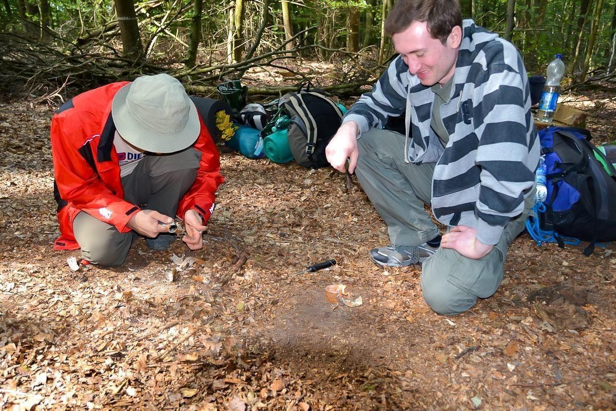 Die Teilnehmer bauten gemeinsam einfache Fallen im Wald, um sich mit dem Fallenbau vertraut zu machen. Diese Technik ist essenziell, um Nahrungsquellen in der Wildnis zu sichern. In Gruppen arbeiteten die Teilnehmer auch an der Feuererzeugung. Sie übten das Feuermachen und bereiteten eine Feuerstelle vor, um ihre Kochfähigkeiten zu demonstrieren. Dabei wurden verschiedene Kochgeräte improvisiert, um Lebensmittel über dem offenen Feuer zuzubereiten.