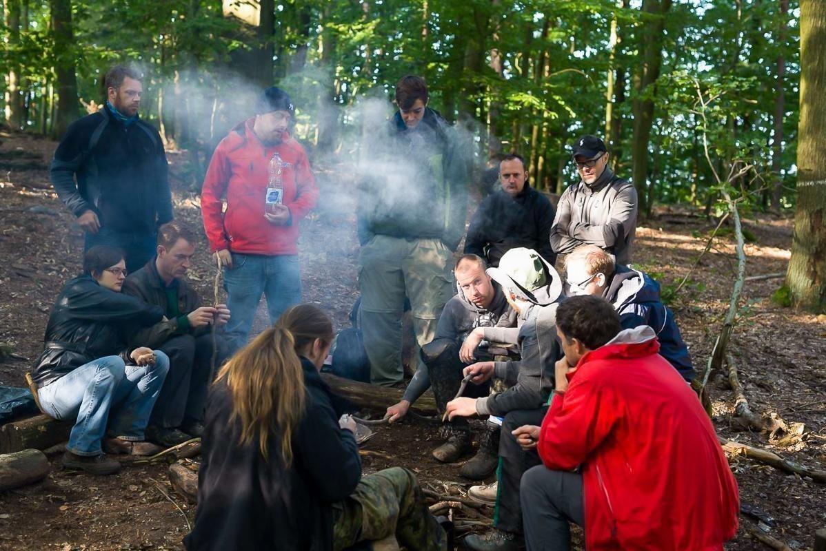 Gruppendynamik im Wald, Teilnehmer interagieren und diskutieren miteinander