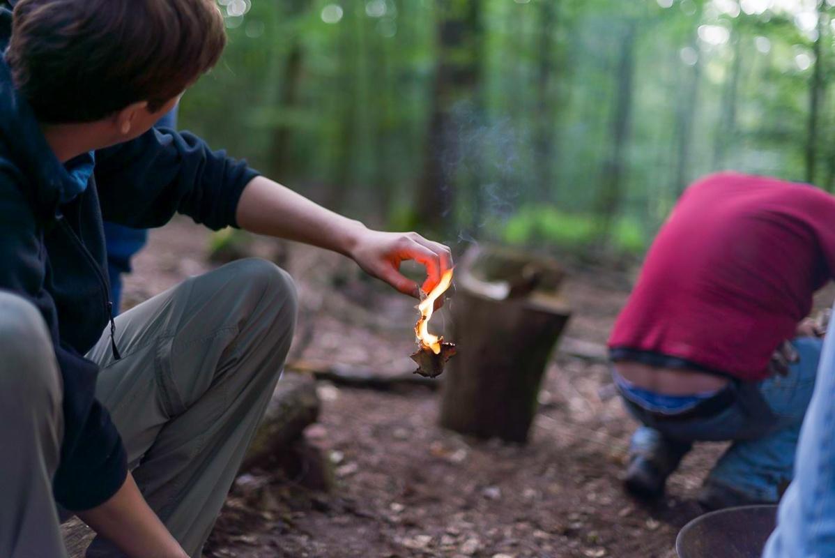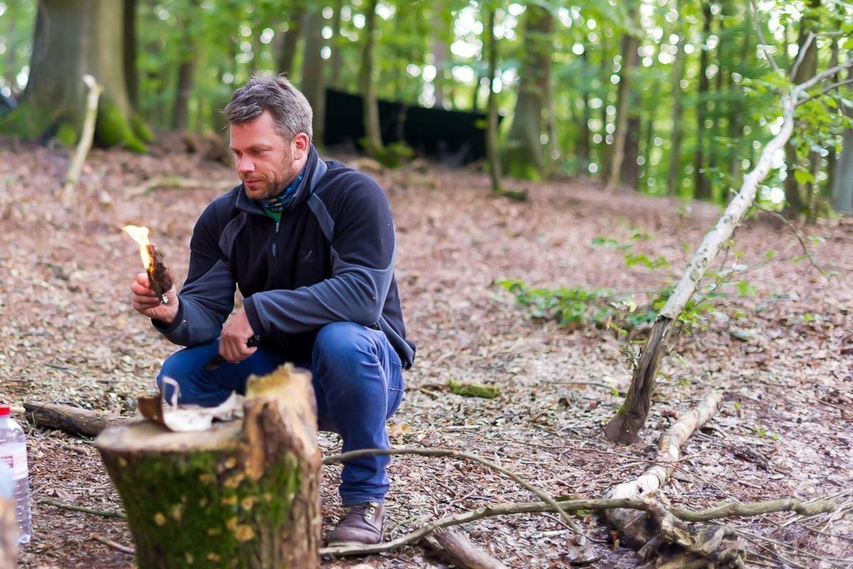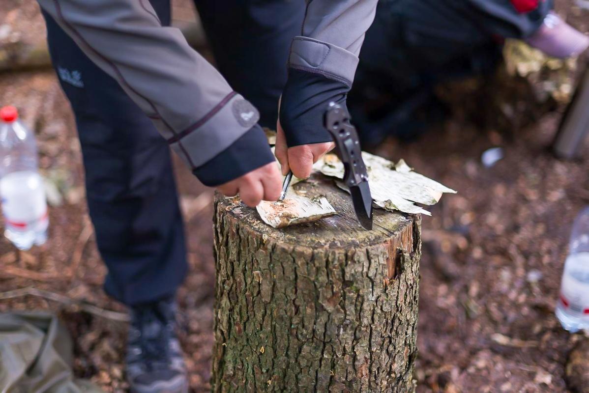 Ein weiterer wichtiger Bestandteil des Kurses war das Fallenbauen, wobei die Teilnehmer verschiedene Techniken wie Schlagfallen und Schlingen erlernten. Diese Fähigkeiten sind essenziell für die Nahrungsbeschaffung in der Wildnis. Zudem wurde das sichere Arbeiten mit dem Messer geübt, was für das Schnitzen und die Herstellung von Werkzeugen unerlässlich ist. Die Teilnehmer schnitzten an Holzstücken, um ihre Fertigkeiten zu verfeinern und lernten, wie man improvisierte Fackeln herstellt, um Lichtquellen in der Dunkelheit zu schaffen.