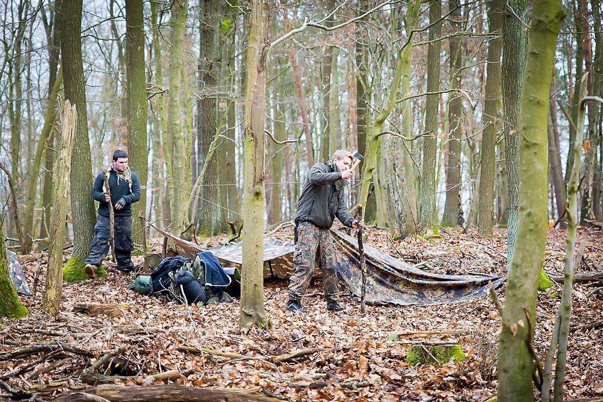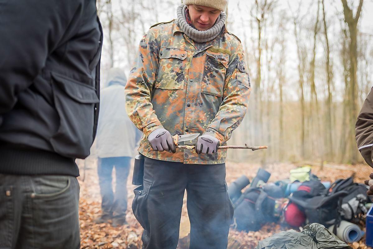 Im Rahmen des Realistic-Survival-Kurses in Hessen wurden verschiedene Techniken vermittelt, die für das Überleben in der Natur von Bedeutung sind. Die Teilnehmer beschäftigten sich intensiv mit dem Bau von Unterständen und Wetterschutz, um sich vor den Elementen zu schützen. Dabei erlernten sie, wie man Materialien aus der Umgebung nutzt, um einen effektiven Schutzraum zu schaffen. Das richtige Arbeiten mit dem Messer spielte ebenfalls eine zentrale Rolle, da die Teilnehmer sich mit dem Schnitzen vertraut machten und lernten, wie man Werkzeuge aus Holz herstellt.