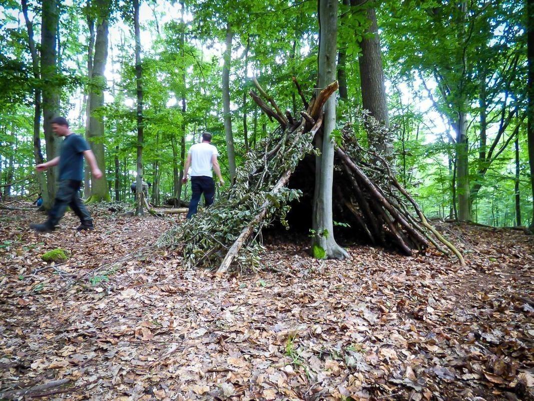 Ein weiterer wichtiger Bestandteil des Trainings war der Bau eines Wetterschutzes. Die Teilnehmer konstruierten Unterstände aus Ästen, um sich vor den Elementen zu schützen. Diese Übung förderte nicht nur das handwerkliche Geschick, sondern auch das Verständnis für die Notwendigkeit eines sicheren Rückzugsorts in der Natur. Zudem erlernten die Teilnehmer das sichere Arbeiten mit dem Messer, was beim Schnitzen von Holzstücken zur Anwendung kam. Diese Fertigkeit ist essenziell, um Werkzeuge herzustellen oder Nahrungsmittel vorzubereiten.