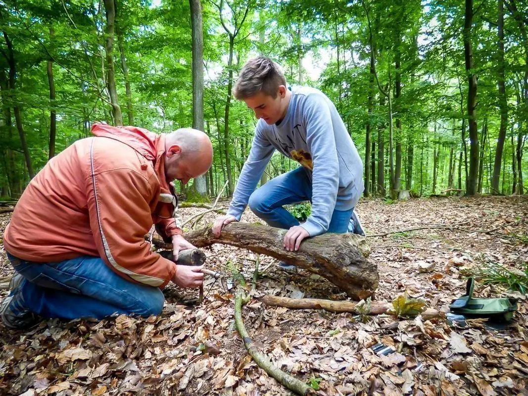 Im Rahmen des Realistic-Survival-Kurses in Hessen, der am 27. und 28. Juni 2015 stattfand, erlernten die Teilnehmer grundlegende Fähigkeiten für das Überleben in der Natur. Die Ausbildung umfasste verschiedene Techniken, die für das Überstehen in Notsituationen von Bedeutung sind. Die Gruppe beschäftigte sich intensiv mit der Zunderaufbereitung und Glutpflege, um in der Wildnis Feuer zu entfachen. Das Entzünden von Zunder auf einem Baumstumpf stellte eine praktische Übung dar, die den Teilnehmern half, ihre Fertigkeiten zu verfeinern.
