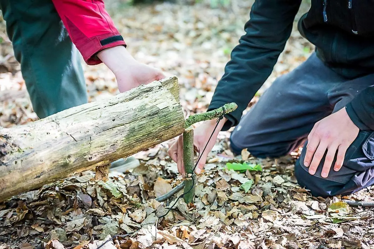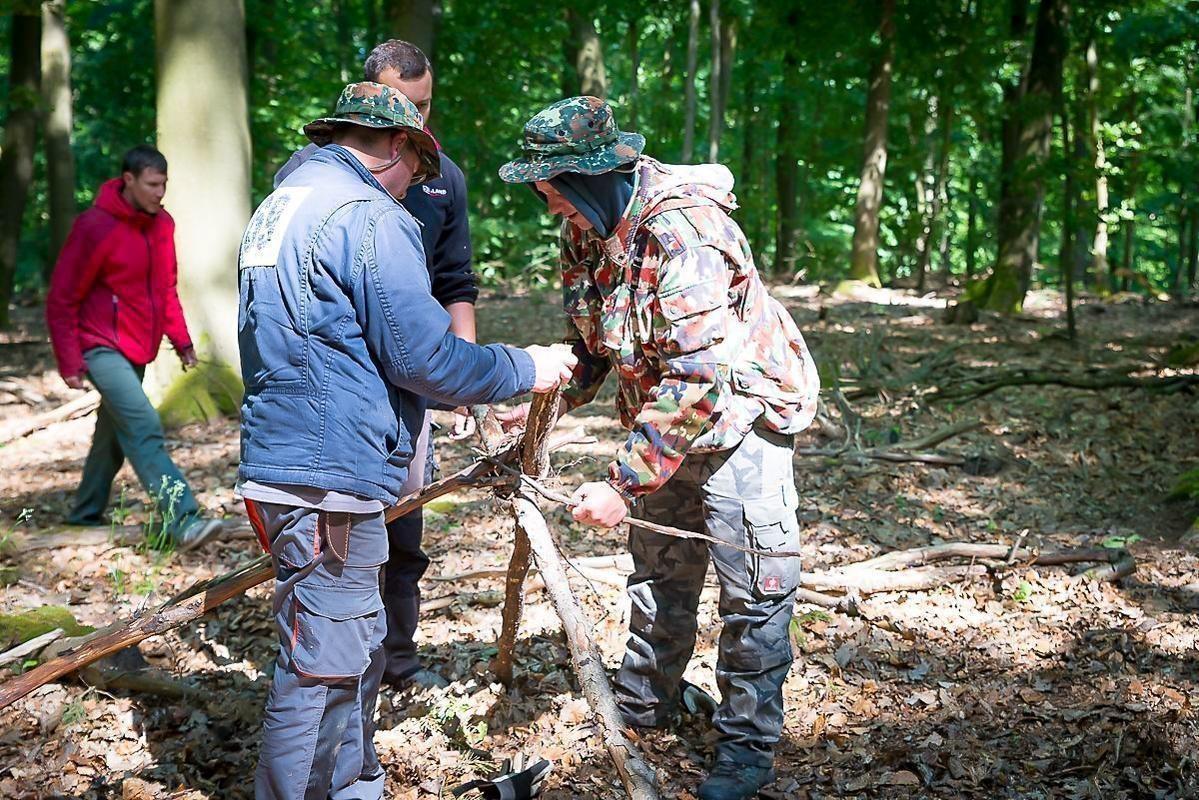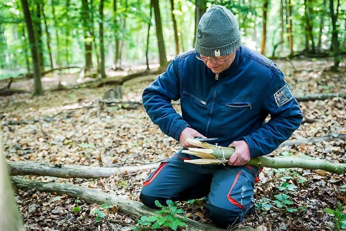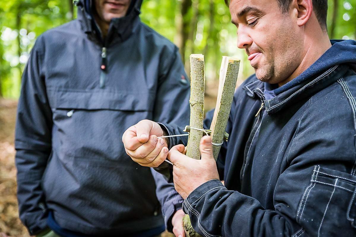 Ein wichtiger Bestandteil des Trainings war das sichere Arbeiten mit dem Messer, das den Teilnehmern ermöglichte, Holz für verschiedene Konstruktionen zu bearbeiten. Dabei wurden auch Knoten- und Schnurtechniken vermittelt, die für den Bau von Unterständen und anderen Strukturen unerlässlich sind. Die Fähigkeit, improvisierte Fackeln herzustellen, wurde ebenfalls geübt, um Lichtquellen in der Dunkelheit zu schaffen und Feuer zu entfachen.