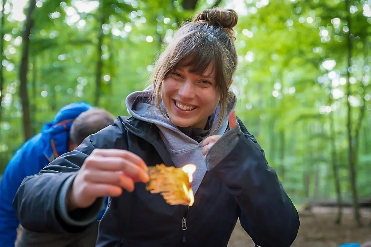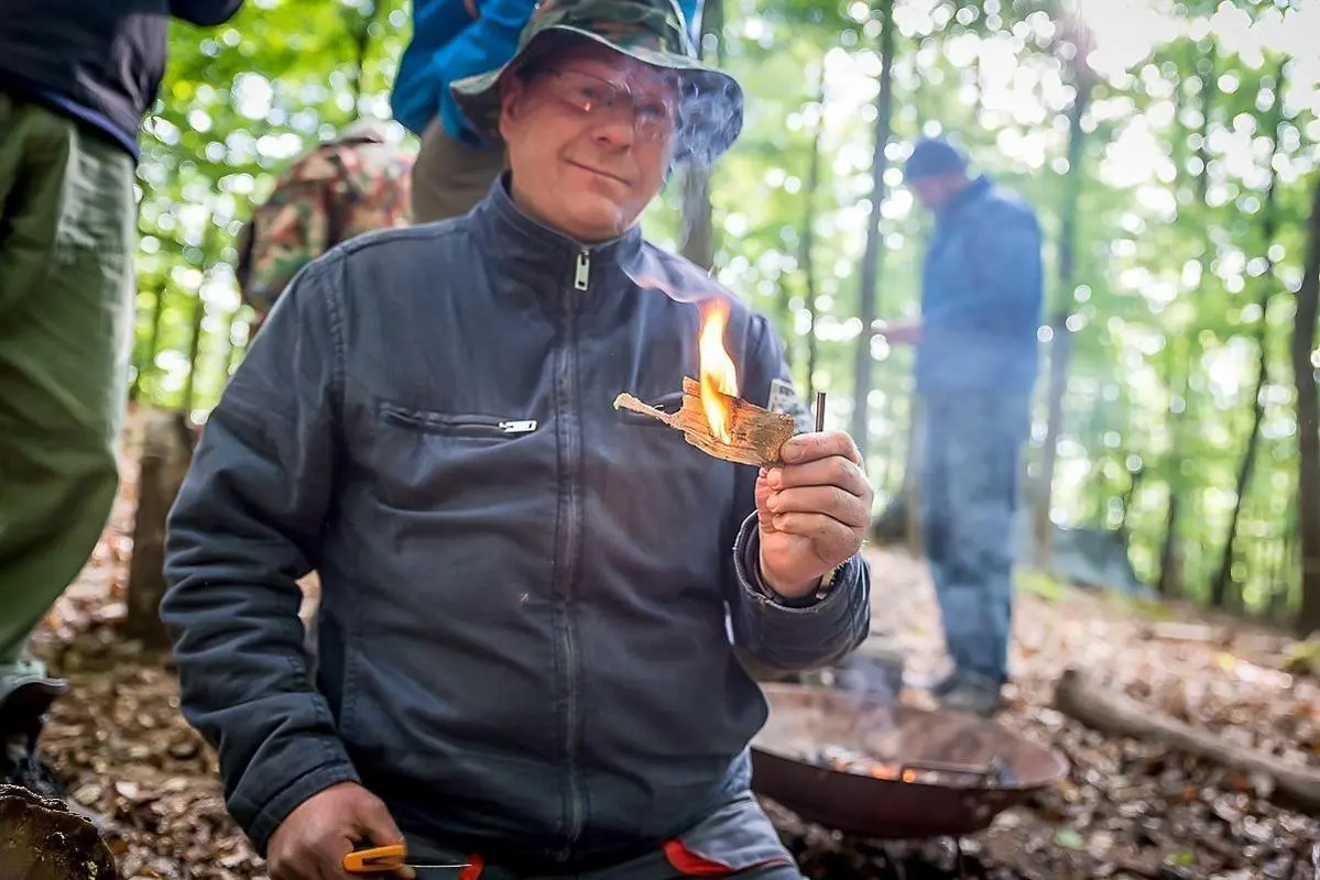 Die Gruppe hatte auch die Gelegenheit, Erste Hilfe zu erlernen und Techniken zum Bergen und Tragen von Verletzten zu trainieren. Diese Kenntnisse sind entscheidend, um in Notfällen schnell und effektiv handeln zu können. Das Entzünden von Feuer wurde durch verschiedene Methoden demonstriert, darunter das Nutzen von Feuersteinen und Zündhölzern, was den Teilnehmern half, ein besseres Verständnis für die verschiedenen Möglichkeiten zur Feuererzeugung zu entwickeln.