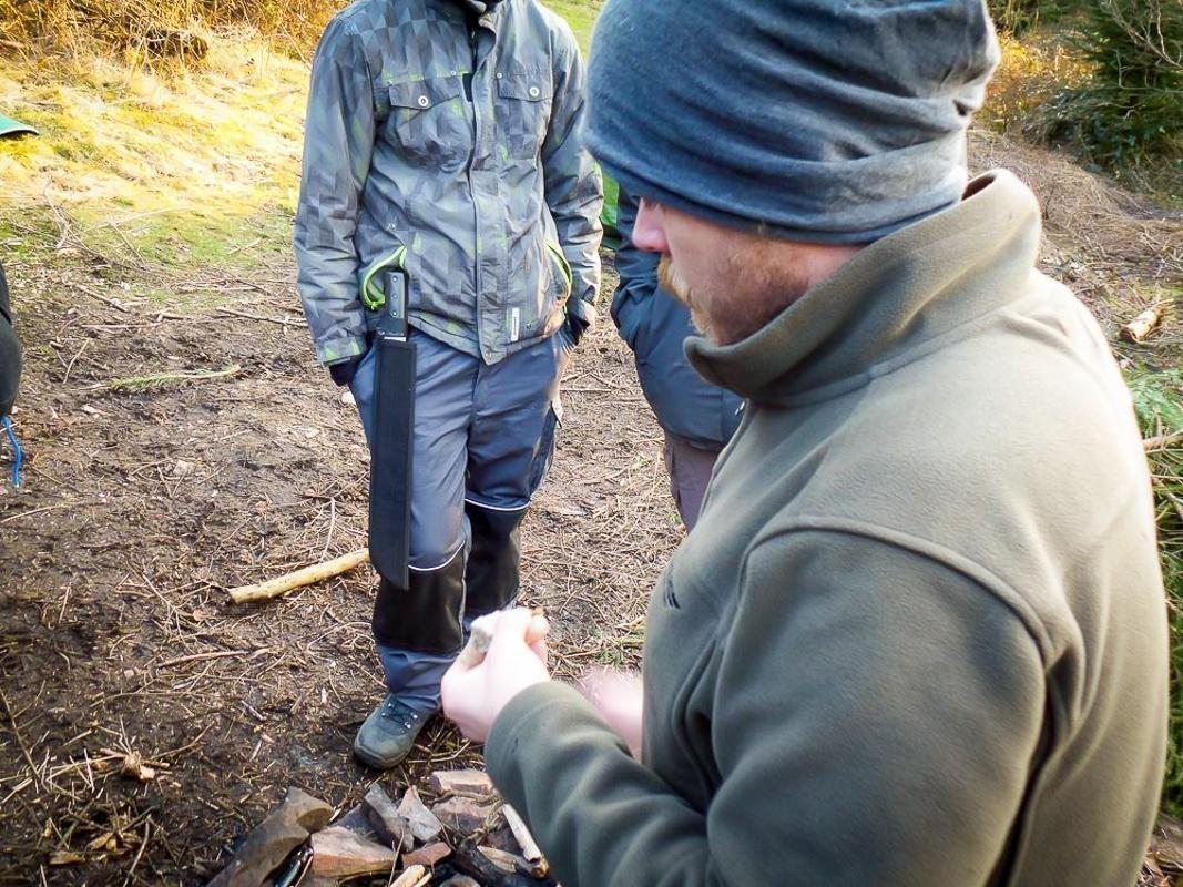 Ein weiterer Bestandteil des Trainings war die Organisation des Lagers und die richtige Ausrüstung. Die Teilnehmer hatten die Möglichkeit, ihre Kenntnisse im Schnitzen zu vertiefen und lernten, wie man mit einem Messer sicher umgeht. Diese Übungen ergänzten die grundlegenden Survival-Basics und förderten das Verständnis für die verschiedenen Herausforderungen im Freien.