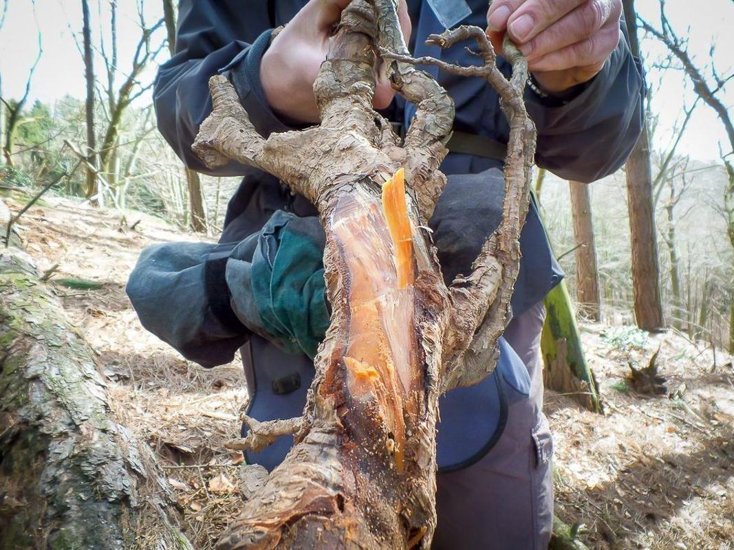 Zweige werden bearbeitet, um Zunder aus der Rinde zu gewinnen