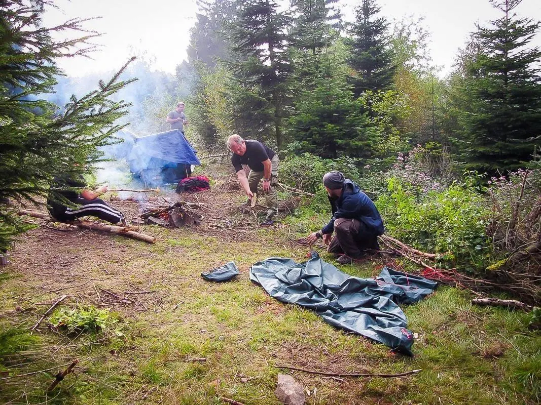 Im Rahmen des Realistic-Survival-Kurses in NRW, der vom 06. bis 07. September 2014 stattfand, erlernten die Teilnehmer grundlegende Survival-Techniken. Die Gruppe beschäftigte sich intensiv mit dem Bau eines Wetterschutzes, um sich in der Natur vor den Elementen zu schützen. Hierbei wurde Wert auf die richtige Auswahl der Materialien gelegt, um eine effektive Unterkunft zu schaffen. Zudem wurden Techniken zum sicheren Arbeiten mit dem Messer und Schnitzen vermittelt, um Werkzeuge für verschiedene Zwecke herzustellen.