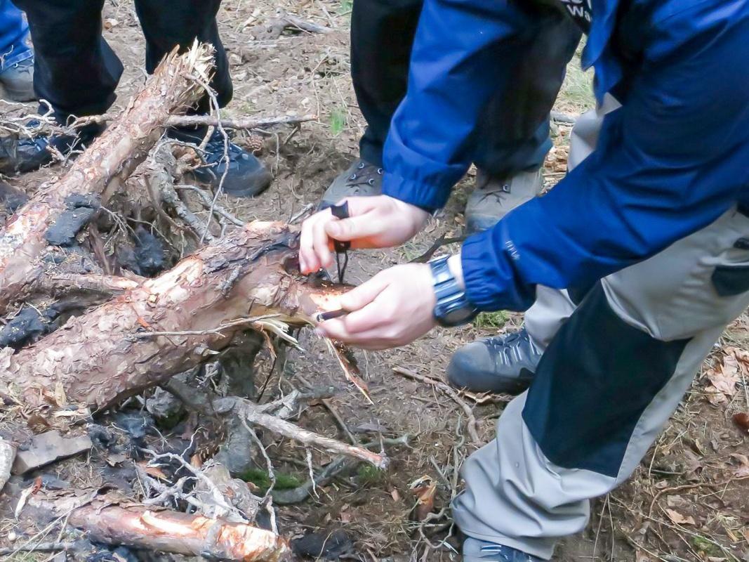 Die praktische Anwendung dieser Fähigkeiten wurde durch verschiedene Übungen unterstützt. So schnitzten die Teilnehmer an Baumstämmen und bereiteten Materialien vor, um ihre Unterstände weiter auszubauen. Auch die Organisation der Ausrüstung wurde thematisiert, was für ein erfolgreiches Überleben in der Wildnis von großer Bedeutung ist. Die Kombination aus Theorie und Praxis ermöglichte es den Teilnehmern, ein fundiertes Wissen über essentielle Survival-Techniken zu erlangen.