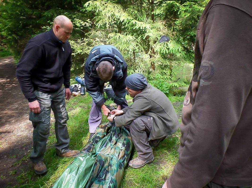 Die Teilnehmer arbeiteten gemeinsam an verschiedenen Übungen, die nicht nur die praktische Anwendung von Survival-Techniken förderten, sondern auch Teamarbeit und Kommunikation stärkten. In einer Übung wurde eine Plane für einen Wetterschutz gespannt, was die Wichtigkeit der Zusammenarbeit in kritischen Situationen verdeutlichte. Die Gruppe übte auch Erste-Hilfe-Maßnahmen, um im Falle eines Unfalls schnell reagieren zu können. Diese Maßnahmen sind entscheidend für die Sicherheit und das Wohlbefinden aller Beteiligten während eines Überlebenstrainings.