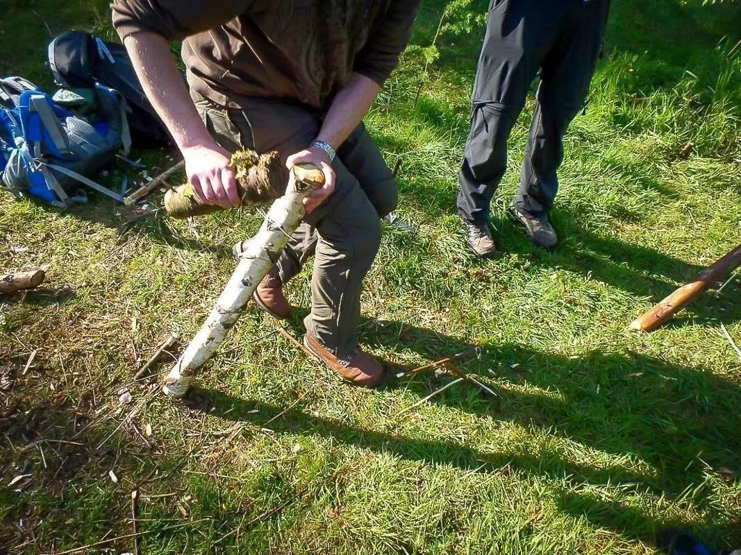 Ein weiterer wichtiger Bestandteil des Kurses war die Arbeit mit dem Messer, die den Teilnehmern das sichere Schnitzen und den Umgang mit Werkzeugen näherbrachte. Diese Fertigkeiten sind essenziell, um in der Natur effektiv arbeiten zu können. Auch das Bergen und Tragetechniken wurden geübt, um im Ernstfall schnell und sicher helfen zu können. Die Gruppe erlernte zudem, wie man eine selbstgebaute Seilbrücke konstruiert, was die Mobilität über Hindernisse hinweg erleichterte.