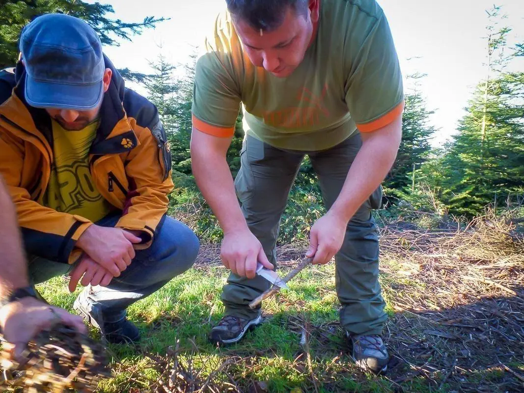 Im Rahmen des Realistic-Survival-Kurses in NRW, der am 18. und 19. Oktober 2014 stattfand, erlernten die Teilnehmer verschiedene grundlegende Techniken für das Überleben in der Natur. Ein wichtiger Bestandteil des Trainings war das sichere Arbeiten mit dem Messer, das den Teilnehmern half, ihre Fähigkeiten im Schnitzen zu verbessern. Dabei schnitzten sie an Holzstücken und fertigten verschiedene Gegenstände aus Naturmaterialien an. Diese Fertigkeiten waren essenziell, um im Ernstfall improvisierte Werkzeuge zu erstellen oder Materialien für andere Zwecke vorzubereiten.