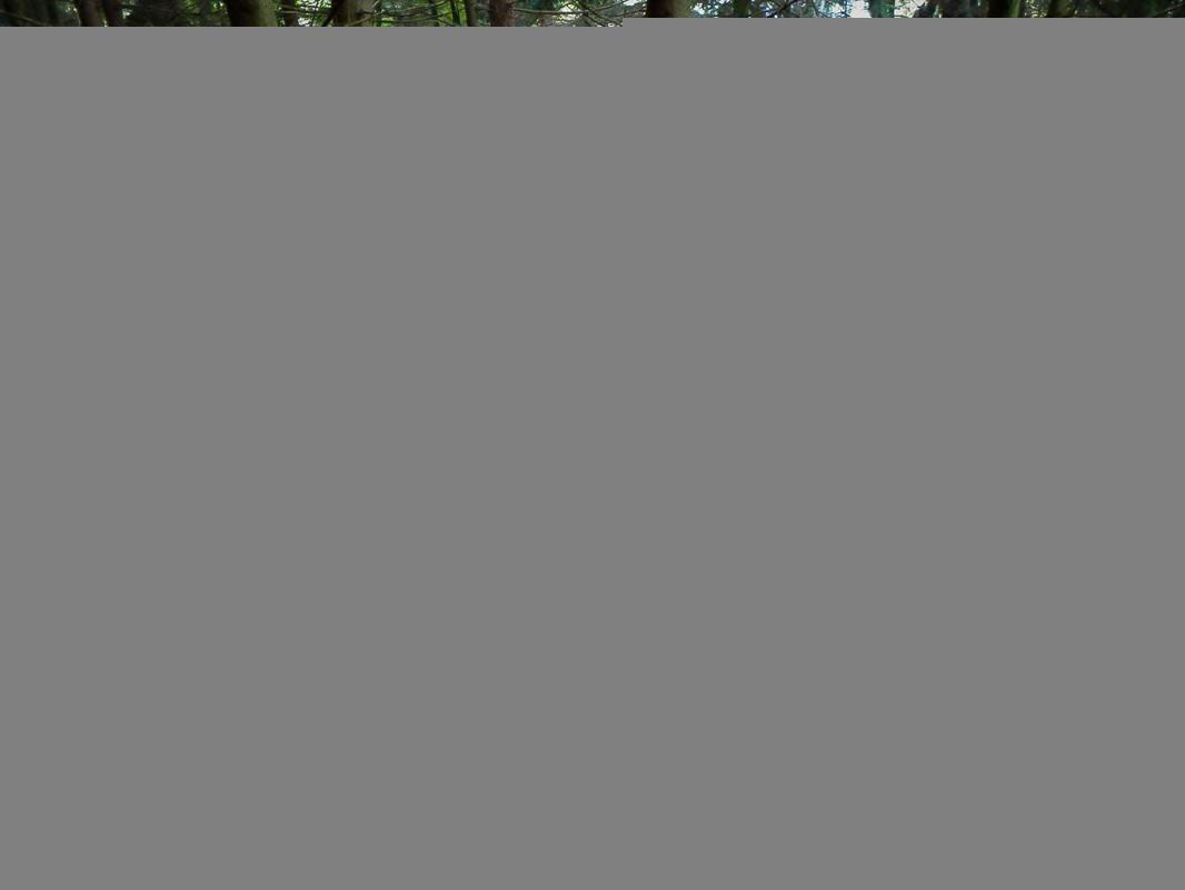 Drei Personen mit Rucksäcken steigen einen bewaldeten Hang hinauf