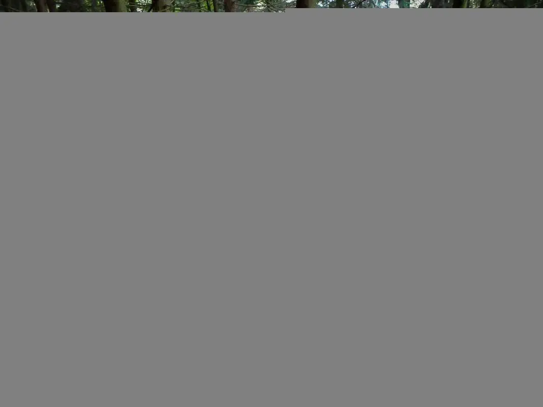 Zwei Personen stehen in einem Waldgebiet, eine Person hält ein Messer in der Hand