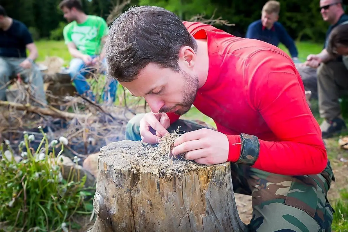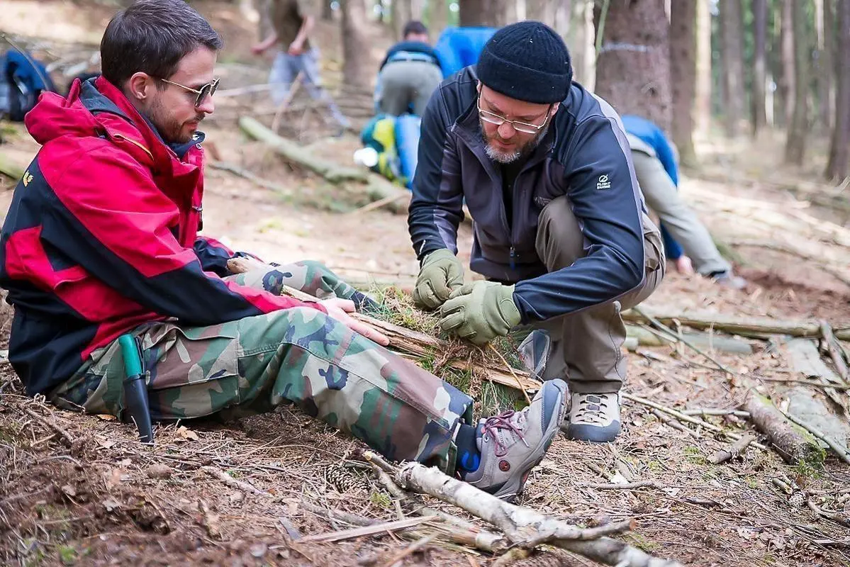 Im Mai 2015 fand ein Realistic-Survival-Kurs in Sachsen statt, bei dem die Teilnehmer verschiedene Techniken erlernten, um in der Natur zu überleben. Die Schulung umfasste grundlegende Fertigkeiten, die für das Überleben in der Wildnis unerlässlich sind. Ein Schwerpunkt lag auf dem Bau von Unterständen und Wetterschutz, um sich vor den Elementen zu schützen. Die Teilnehmer arbeiteten zusammen, um effektive Strukturen aus Ästen und anderen Materialien zu erstellen.