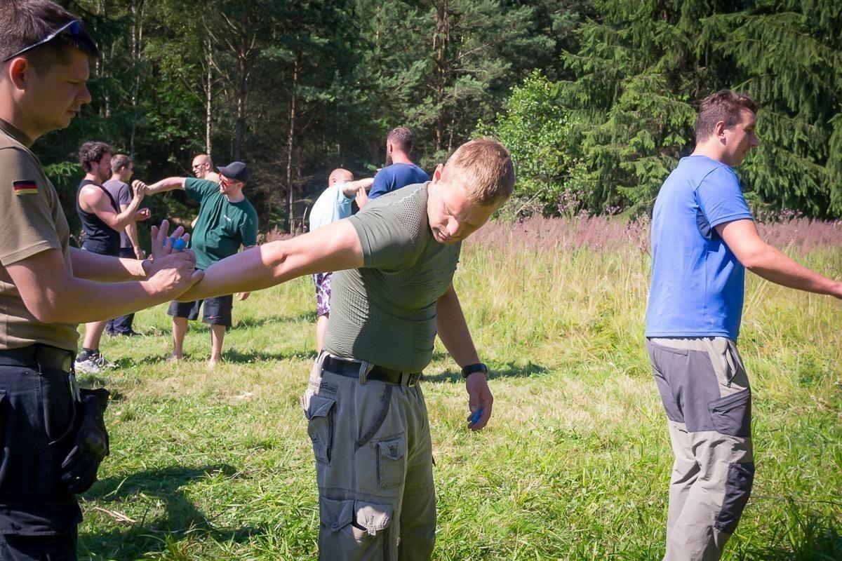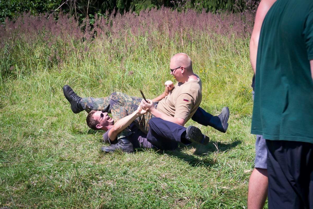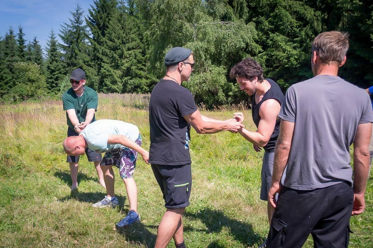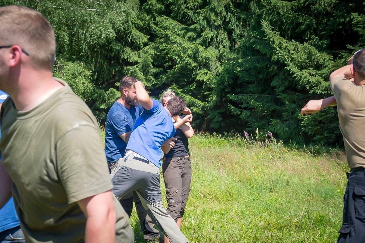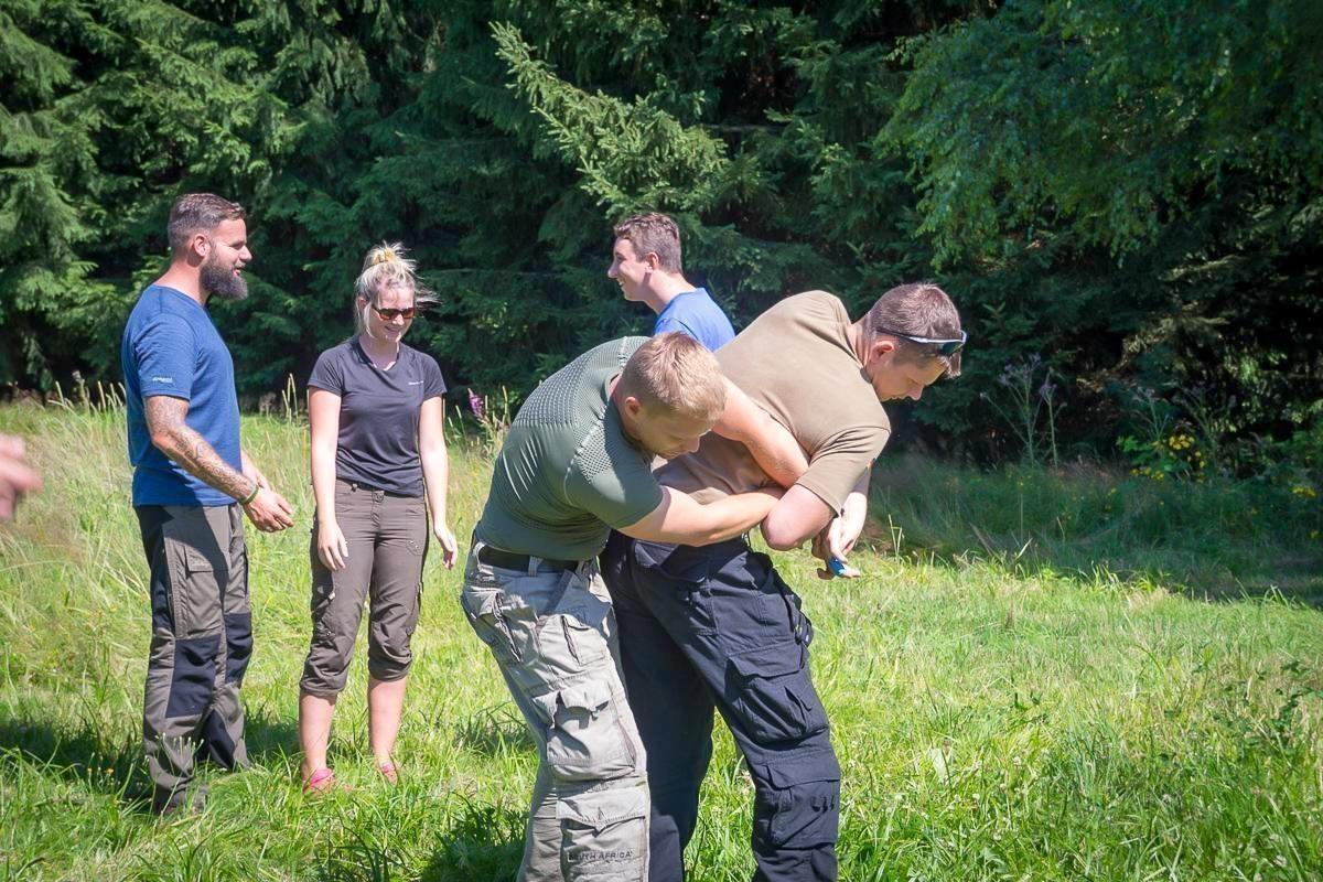 Zusätzlich zu den grundlegenden Survival-Techniken erlernten die Teilnehmer auch Selbstverteidigungstechniken, um sich in kritischen Situationen behaupten zu können. Sie übten verschiedene Befreiungen und Hebeltechniken, die in Notsituationen von Bedeutung sein können. Die Kombination aus praktischen Übungen und theoretischem Wissen machte den Kurs zu einer wertvollen Erfahrung für alle Beteiligten.