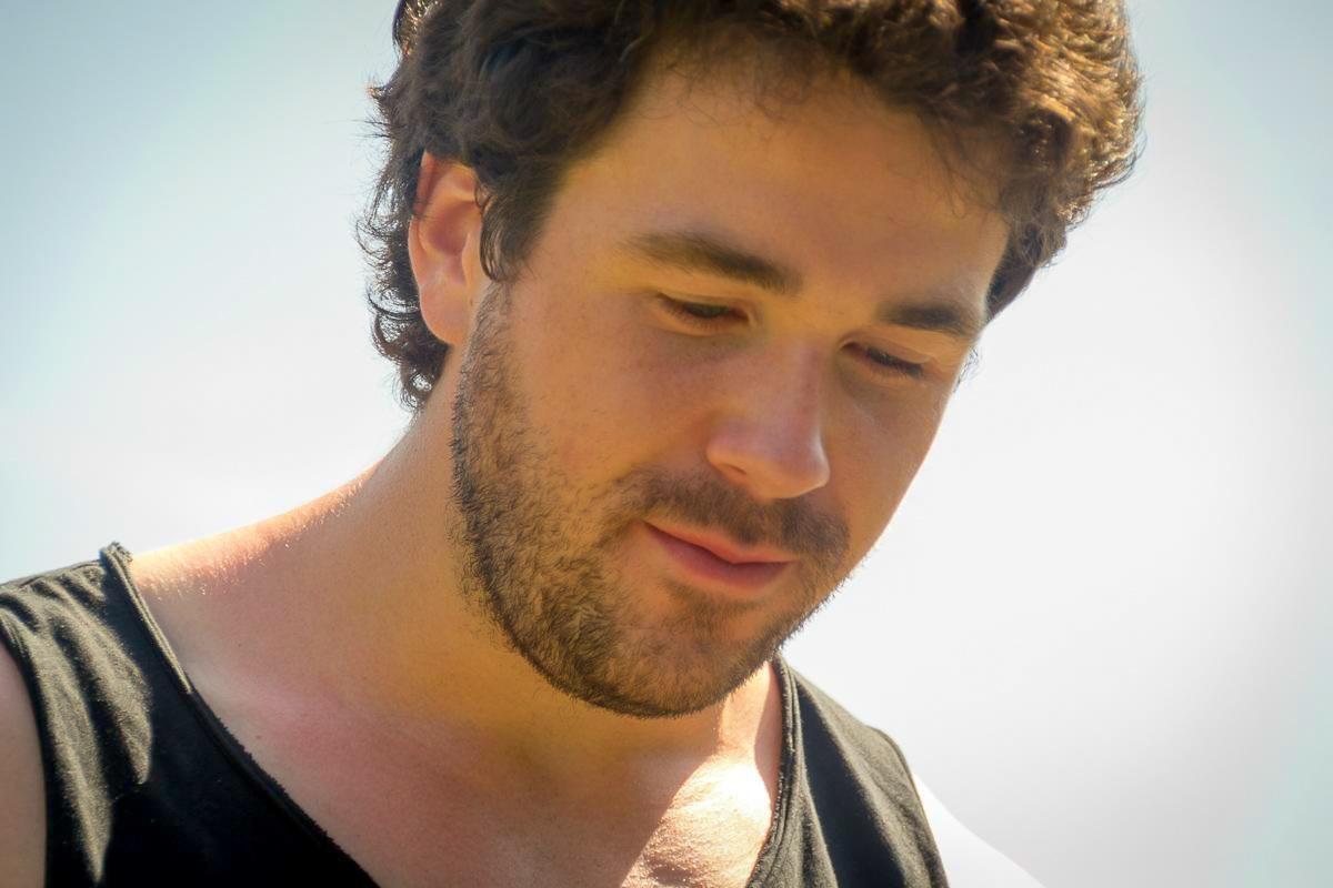 Ein Mann trägt ein grünes T-Shirt, eine schwarze Kappe und Sonnenbrillen