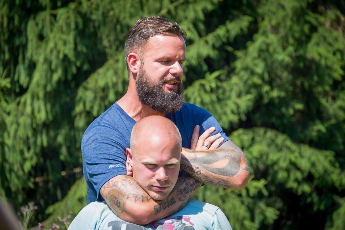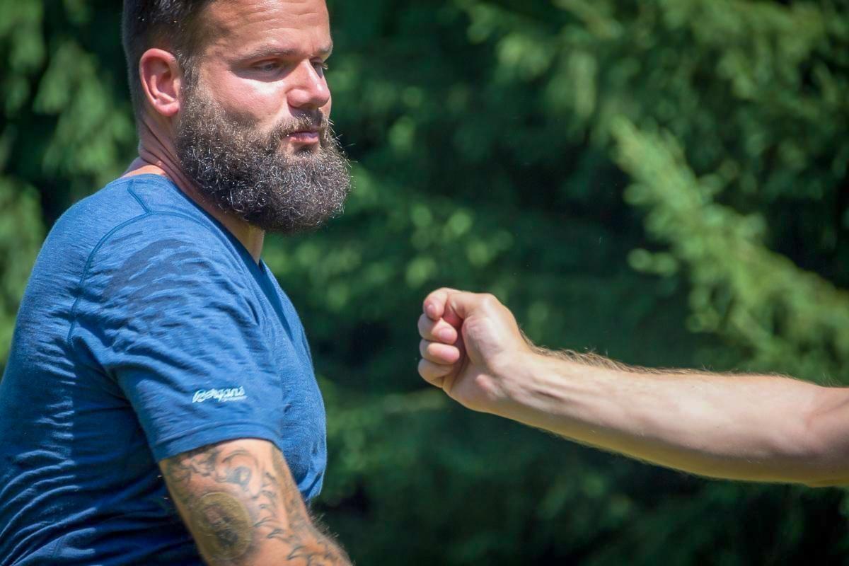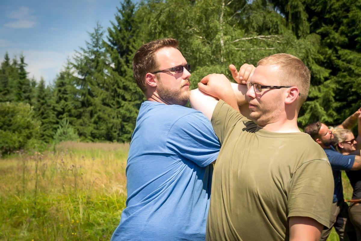 Ein Teilnehmer übt eine Technik zur Befreiung aus einer Umklammerung
