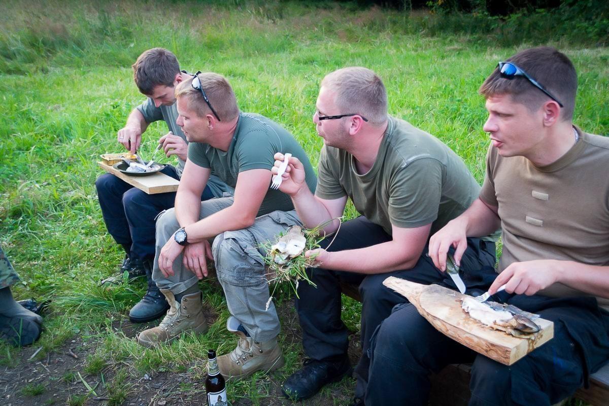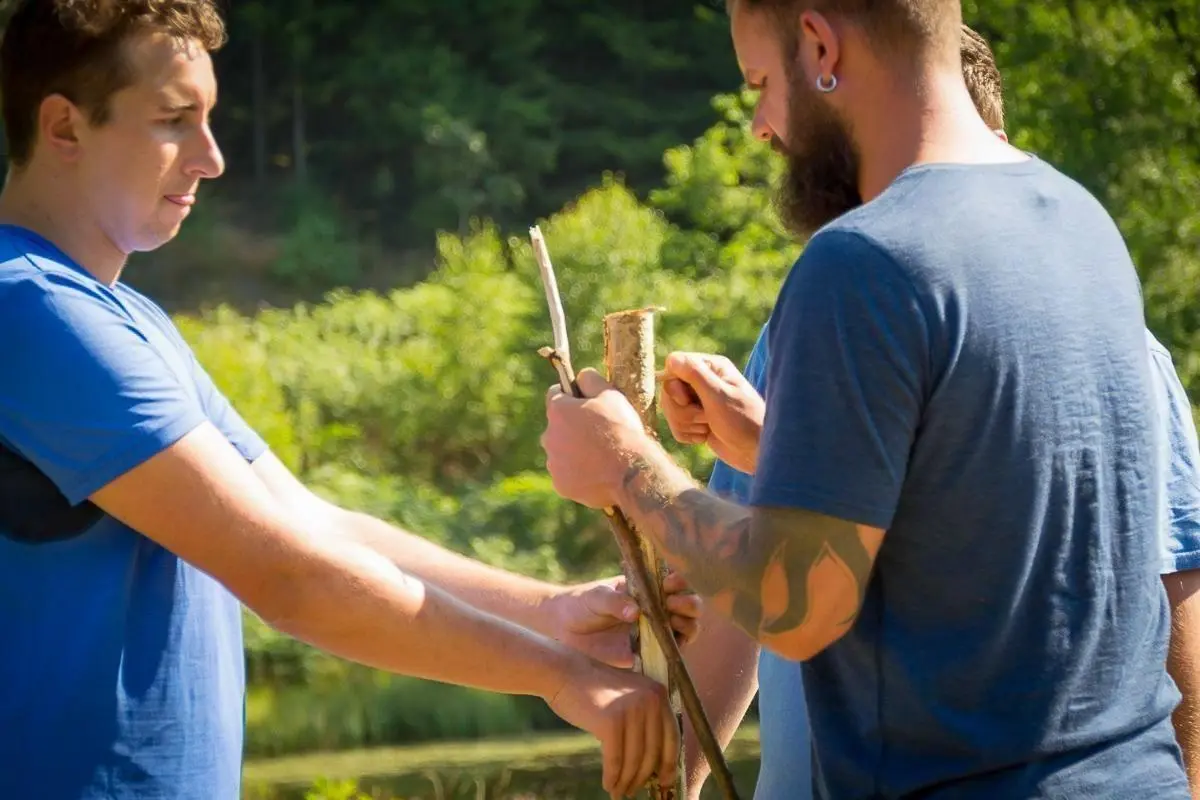 Ein weiterer wichtiger Aspekt des Kurses war die Zubereitung von Nahrungsmitteln. Die Gruppe bereitete gemeinsam Essen über einem Feuer zu und erlernte dabei die Grundlagen der Nahrungszubereitung in der Natur. Sie schnitzten Holzstücke für Grillkonstruktionen und bereiteten Fische zu, die sie gefangen hatten. Diese praktischen Erfahrungen trugen dazu bei, ein besseres Verständnis für die Nahrungsbeschaffung und -zubereitung zu entwickeln.