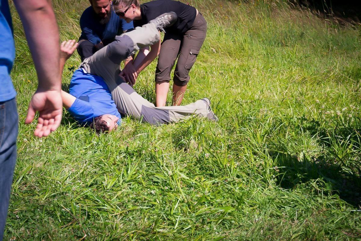 Gruppentraining zur Anwendung von Erste-Hilfe-Techniken im Freien