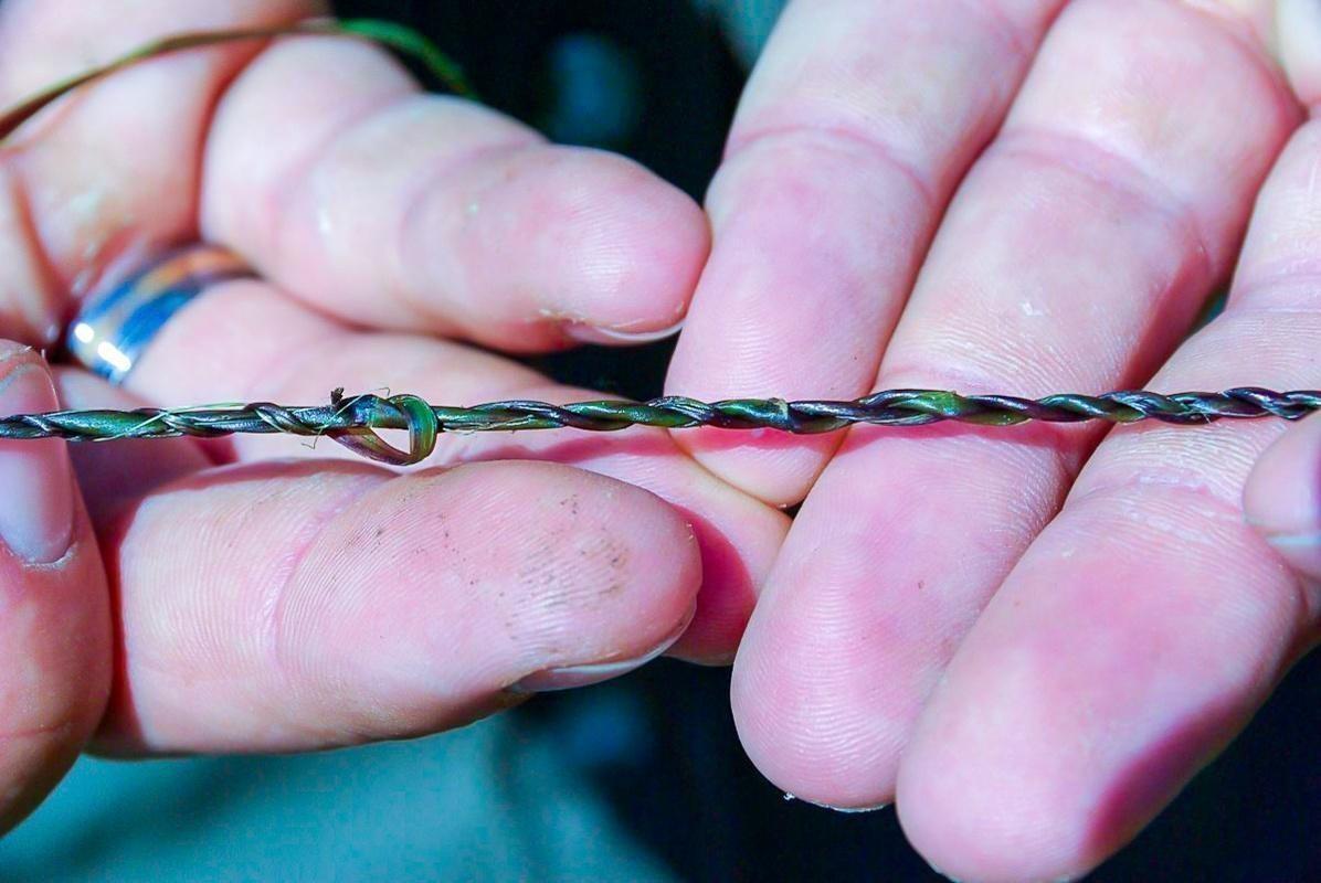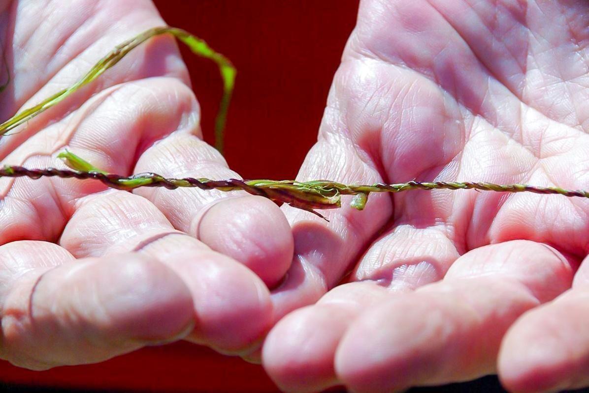Zwei Hände halten einen geflochtenen Pflanzenstrang
