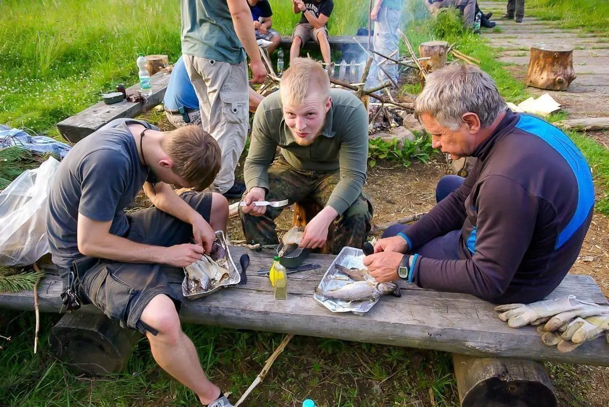 Zusätzlich wurde das Bogentraining als Übung integriert, um den Teilnehmern ein Gefühl für die Präzision und Technik beim Umgang mit dem Bogen zu vermitteln. In einer weiteren Einheit beschäftigten sich die Teilnehmer mit der Zubereitung von Kleinfisch und Krebs als Nahrungsquelle, was ein wichtiger Aspekt der Notnahrung darstellt. Die praktische Anwendung dieser Techniken förderte nicht nur das Verständnis für die Materie, sondern auch das Vertrauen in die eigenen Fähigkeiten.