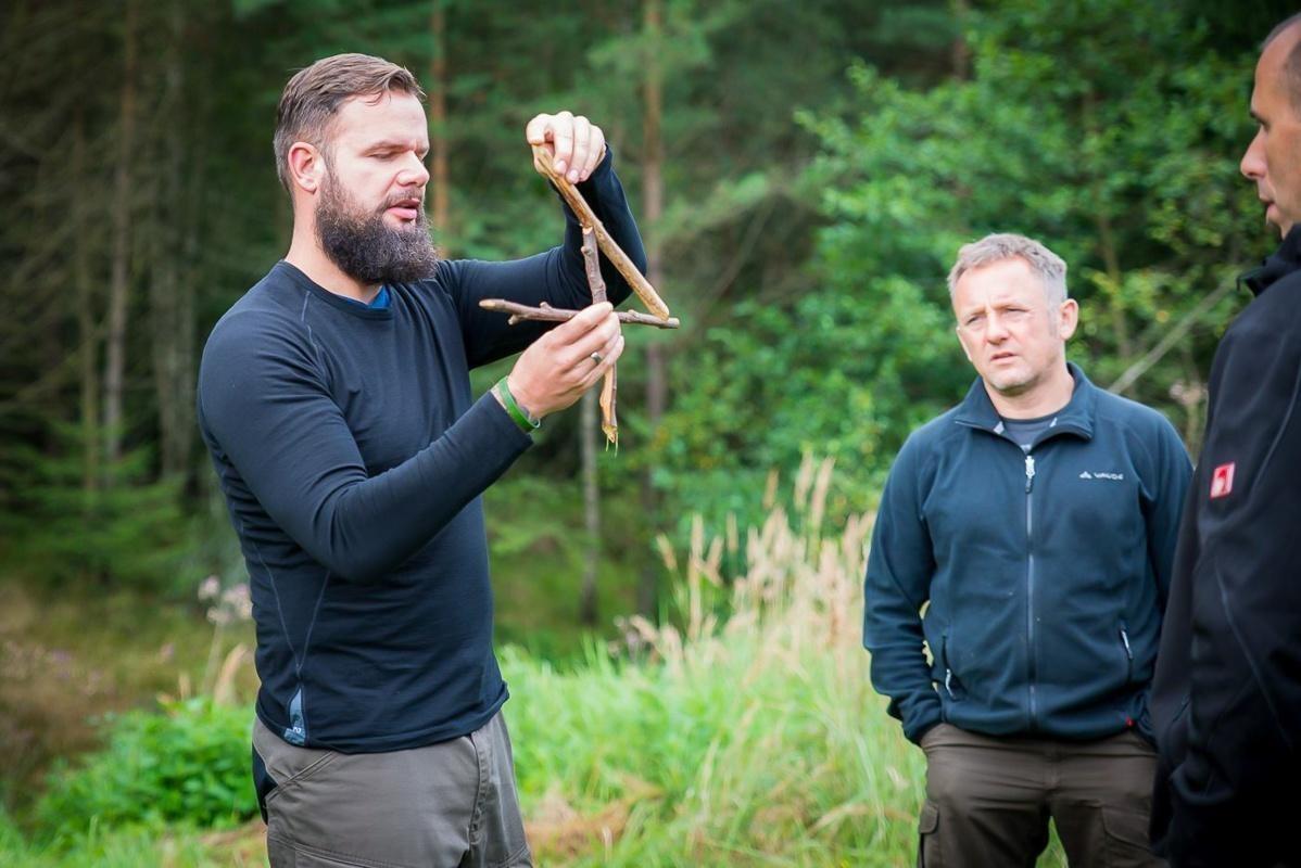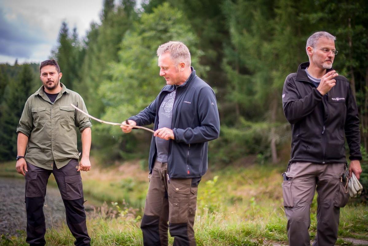 Ein weiterer wichtiger Bestandteil des Trainings war der Bau von Fallen, um Nahrung zu sichern. Die Teilnehmer lernten, wie man selbstgebaute Fallen aus Holz und Ästen konstruiert, um Kleinfische oder Krebse zu fangen. In diesem Zusammenhang wurde auch die Zubereitung von Insekten als Notnahrung thematisiert. Die Gruppe erprobte verschiedene Methoden, um Insekten zu sammeln und zuzubereiten, was eine wertvolle Fertigkeit in der Natur darstellt.