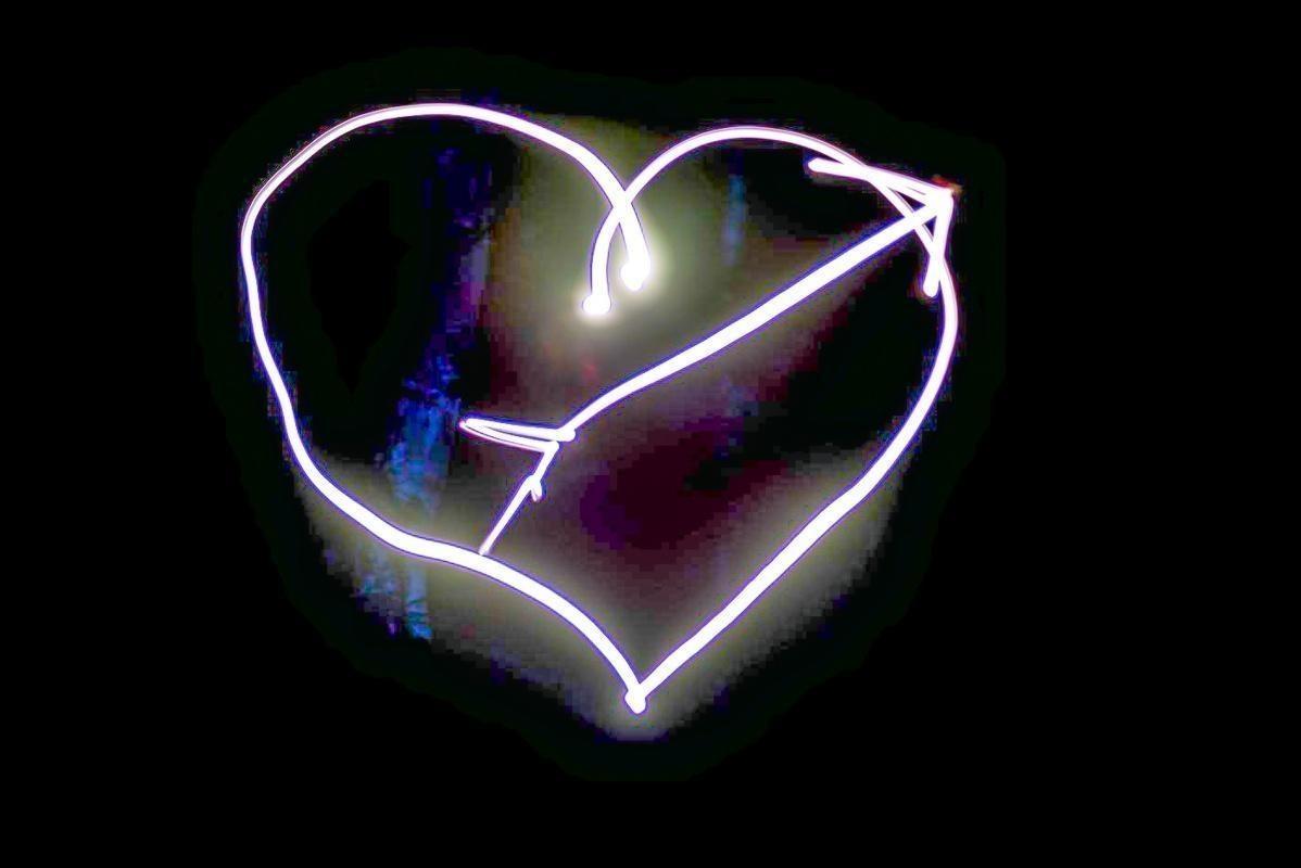 Zwei Personen in einer Wiese, eine Person hält einen Gegenstand über der anderen