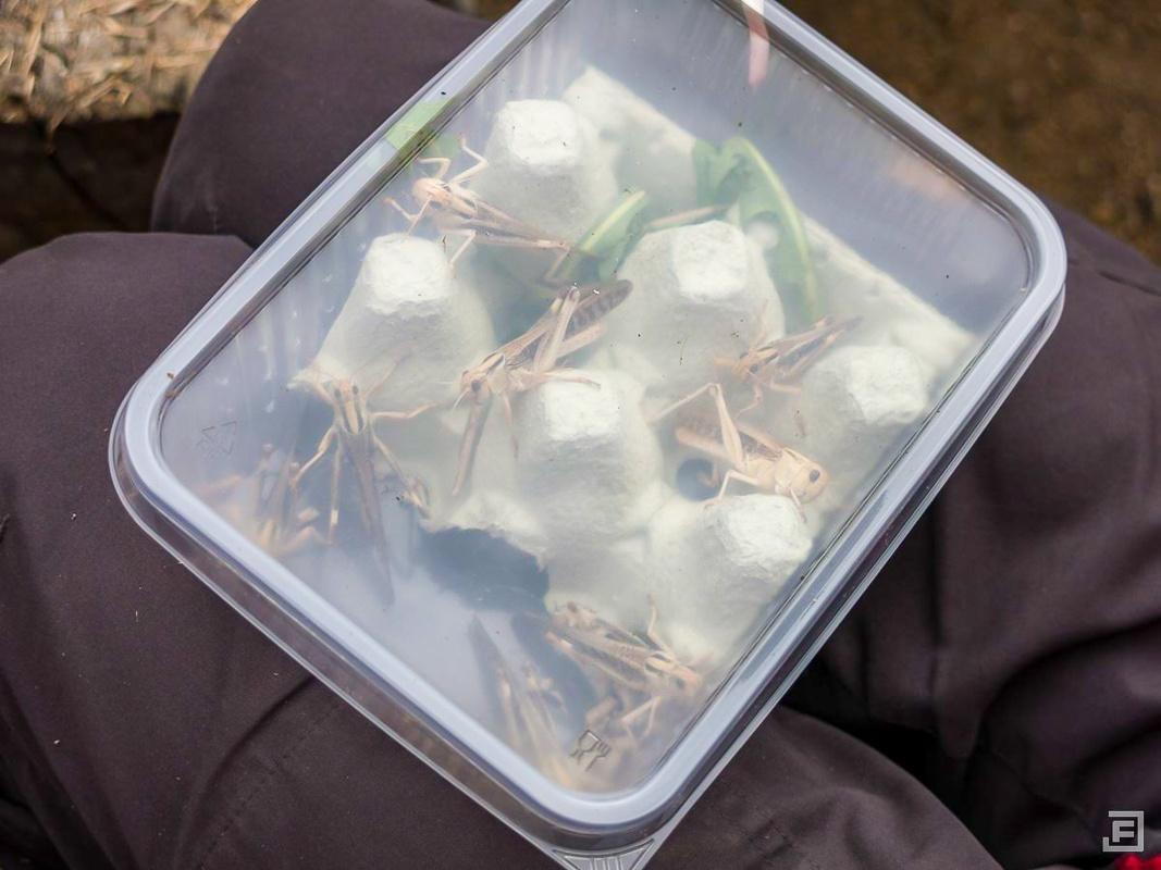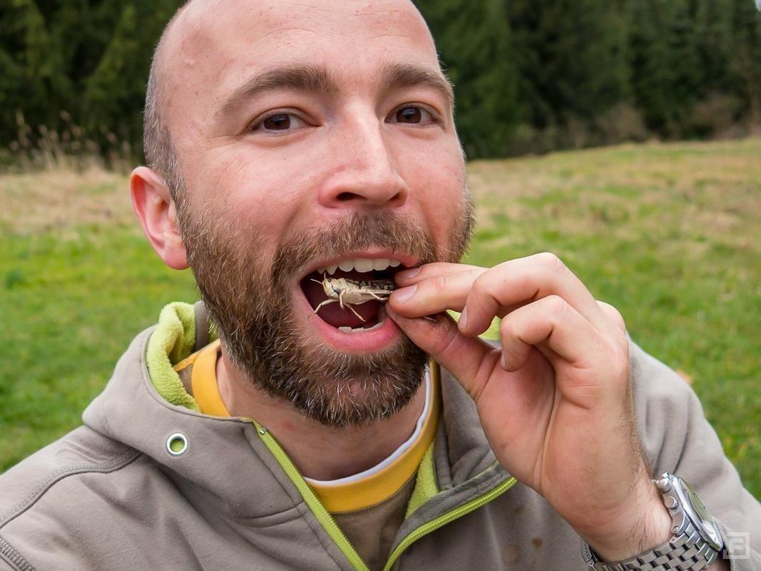 Mund mit Insekten gefüllt, Person lächelt in die Kamera