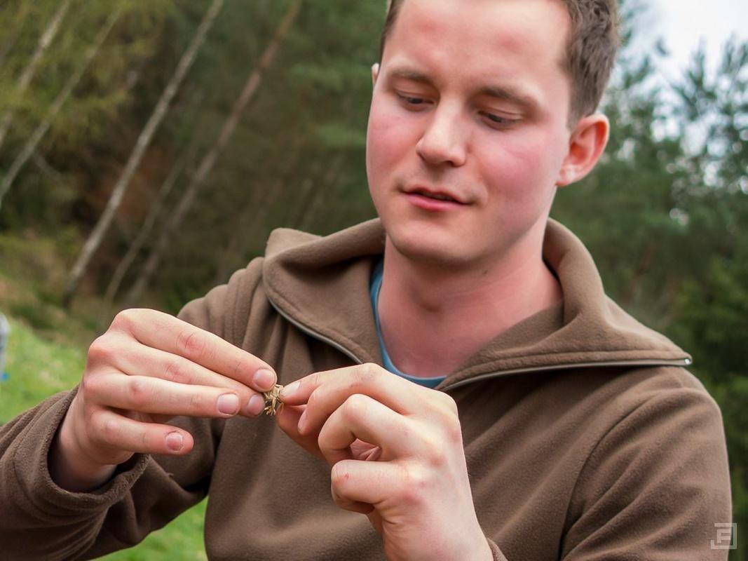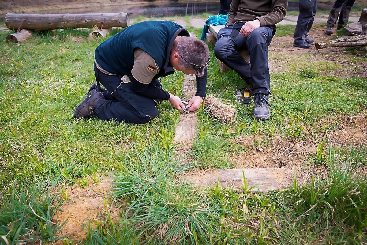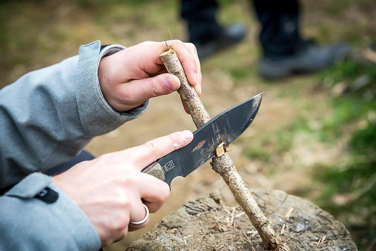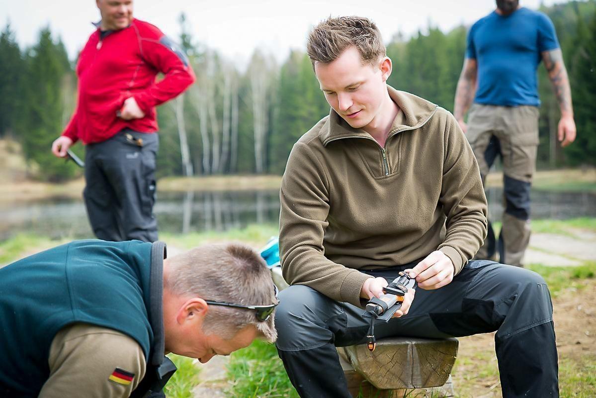Die Teilnehmer beschäftigten sich auch mit der Zubereitung von Insekten als Notnahrung, was eine wichtige Fertigkeit im Survival-Training darstellt. Während des Kurses wurden verschiedene Techniken vermittelt, um die Sicherheit im Umgang mit dem Messer zu gewährleisten. Das Schnitzen von Holzstücken diente nicht nur der praktischen Anwendung, sondern auch der Förderung von Geschicklichkeit und Präzision. Zudem übten die Gruppen das Bergen und die Tragetechniken im Rahmen der Ersten Hilfe, was für Notfallsituationen von Bedeutung ist.