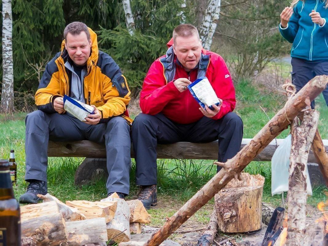 Die Atmosphäre während des Kurses war geprägt von Zusammenarbeit und gegenseitiger Unterstützung. Teilnehmer halfen sich beim Aufstehen und beim Umgang mit den verschiedenen Werkzeugen. Am Ende des Tages versammelten sich alle um ein Feuer, um gemeinsam das zubereitete Essen zu genießen und die Erfahrungen des Tages auszutauschen. Solche gemeinsamen Momente stärken nicht nur das Gemeinschaftsgefühl, sondern festigen auch das erlernte Wissen in einem praktischen Kontext.