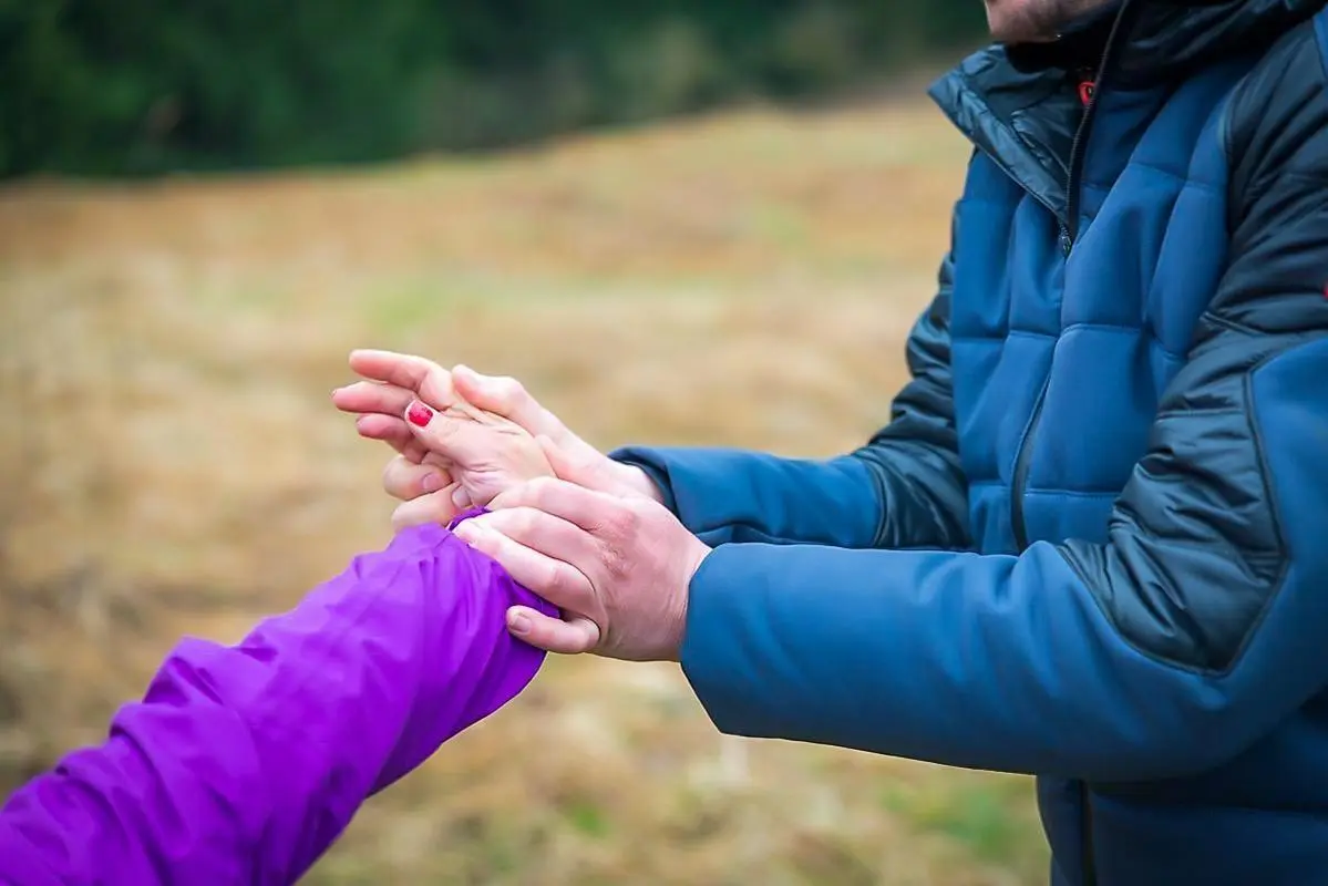 Hände greifen sich gegenseitig, eine Person hält die andere fest