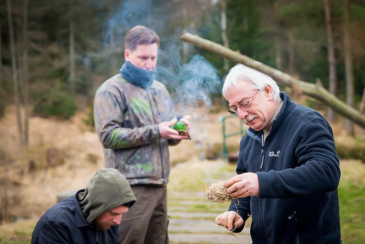 Im Rahmen des Realistic-Survival-Kurses in Sachsen, der am 28. und 29. März 2015 stattfand, erlernten die Teilnehmer grundlegende Techniken des Überlebens in der Natur. Die Ausbildung umfasste verschiedene Aspekte, darunter die Zunderaufbereitung und Glutpflege, die für das Entfachen eines Feuers von entscheidender Bedeutung sind. Die Teilnehmer beschäftigten sich intensiv mit dem sicheren Arbeiten mit dem Messer, was für das Schnitzen von Werkzeugen und die Vorbereitung von Zunder unerlässlich war.