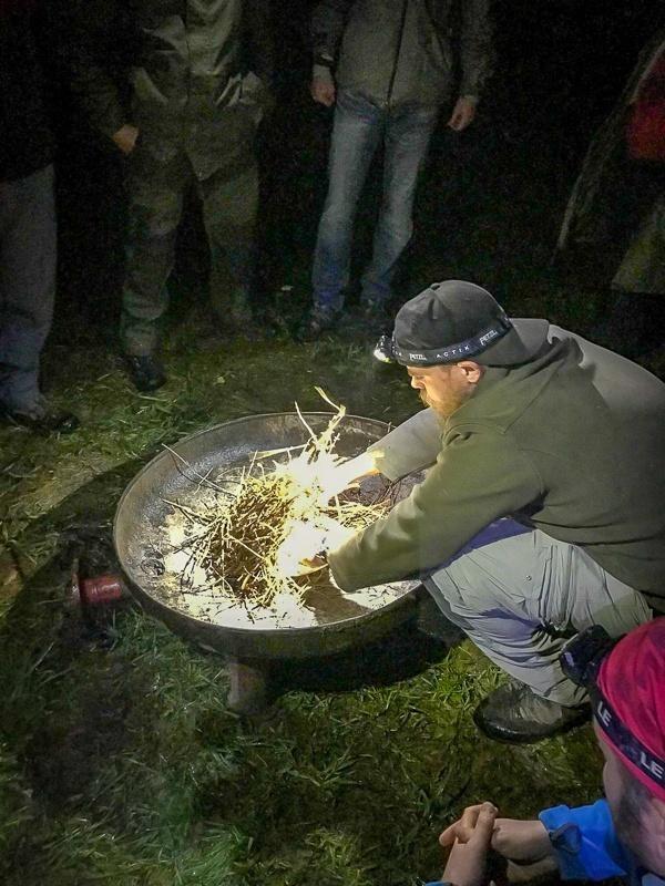 Die Gruppe beschäftigte sich intensiv mit der Organisation des Lagers und dem Aufbau von Unterständen. Dabei wurde Wert auf die richtige Auswahl der Materialien gelegt, um einen effektiven Schutz vor den Elementen zu gewährleisten. Die Teilnehmer lernten, wie wichtig es ist, in der Natur improvisieren zu können und die vorhandenen Ressourcen optimal zu nutzen. An einem anderen Punkt des Trainings wurde die Technik des Feuerentfachens demonstriert, um die Bedeutung von Wärme und Licht in einer Überlebenssituation zu verdeutlichen.